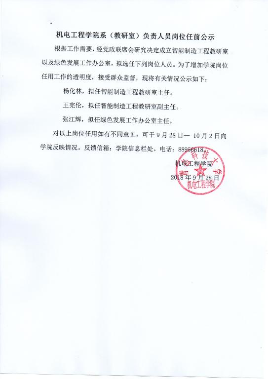 澳门十大信誉网赌大全系(教研室)负责人员岗位任前公示