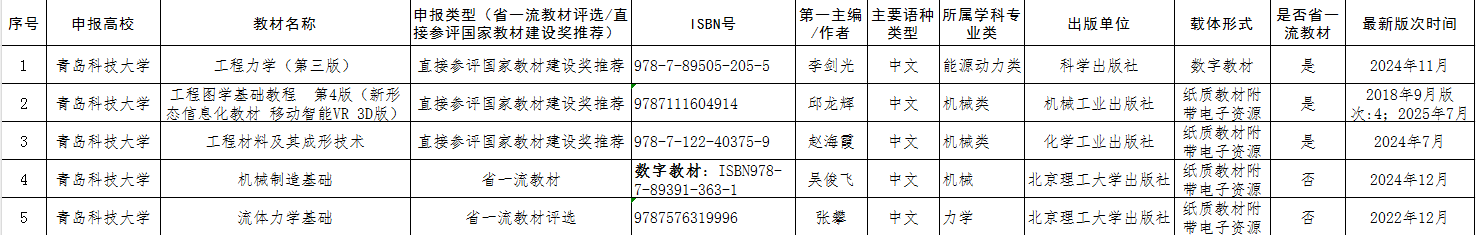根据学校《关于开展第三批山东省高等教育一流教材和第二届全国教材建设奖评选推荐工作的通知》,经个人申报,学院初审,同意以下教材申报并推荐至学校,参加进一步遴选(排名不分先后),特此公示。。公示期三天(2025年7月3日-7月5日),如有异议,请在公示期内向澳门十大信誉网赌大全教学办反映