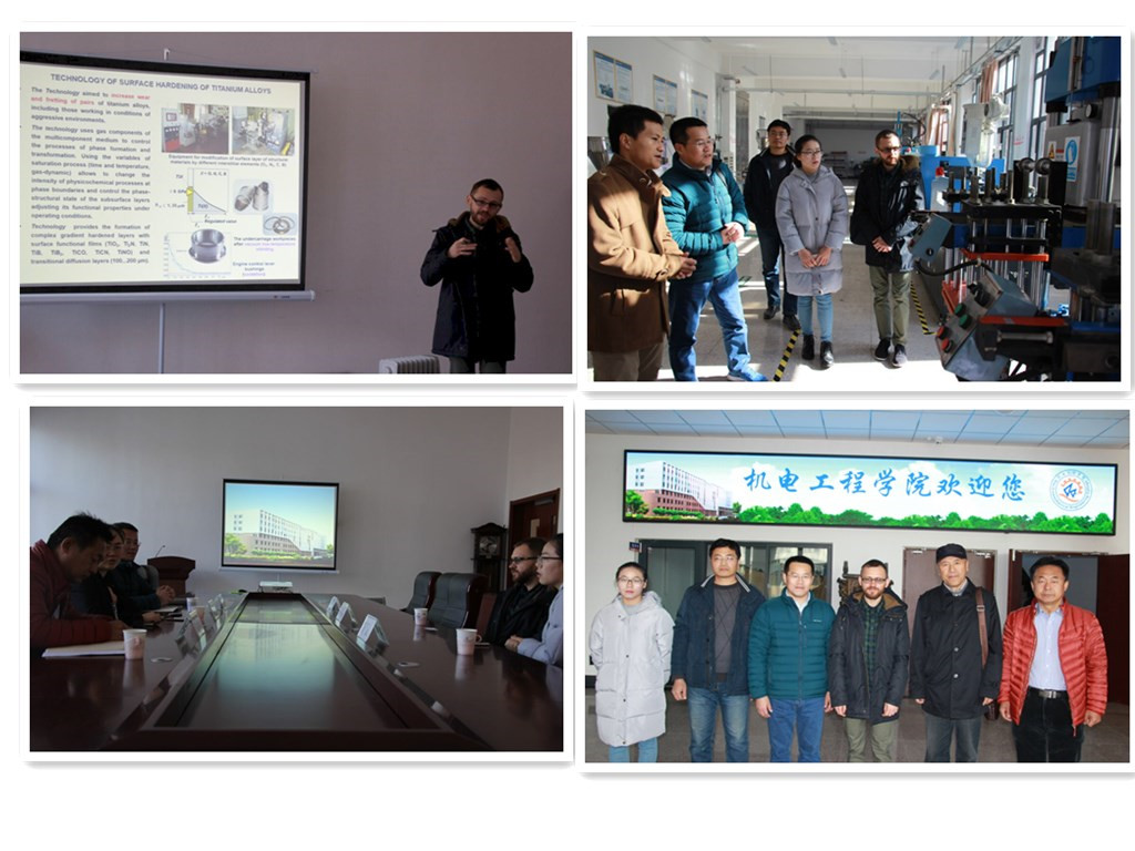 在报告会上,Oleh Tkachuk博士介绍了通过高温、高真空条件下消除表面氧化钛层,然后进行渗碳和渗氮处理提高表面硬度的先进表面处理技术。材料成型系赵程教授做了“低温等离子体表面渗碳、渗氮处理提高不锈钢表面硬度的先进技术和应用”的报告。参会教师和研究生对两种先进技术进行了互动和交流。最后,带领Oleh Tkachuk博士参观过控、热能、成型和高机实验室,并合影留念,希望将来有进一步的项目交流与合作。