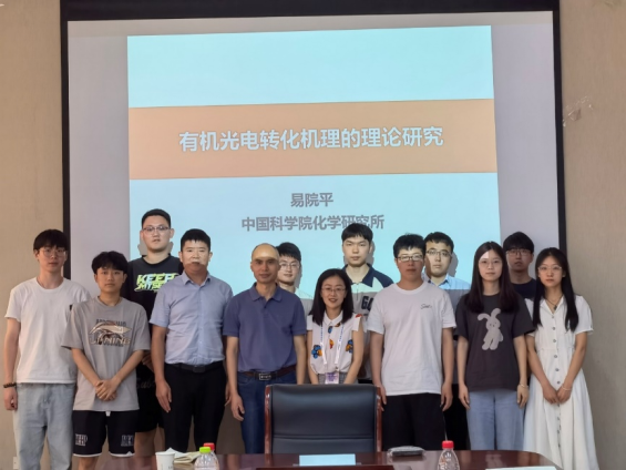 有机体系是由分子间弱相互作用结合而成,具有柔性的特点,使其电子态趋向局域化并深受周围环境和分子振动的影响,因此有机光电材料的光电性质机制复杂。易院平研究员为大家详细讲解了有机光伏的理论模拟,概述了有机太阳电池的光-电转换过程,重点阐述了有机光伏材料激发态的本质和能级结构对电荷产生和能量损失的重要调控作用,揭示了分子结构和聚集态结构的影响,并展示了目前在该领域取得的前沿研究成果。同时,与各位老师学生就研究中遇到的问题进行了交流,报告内容精彩,师生收益颇丰。