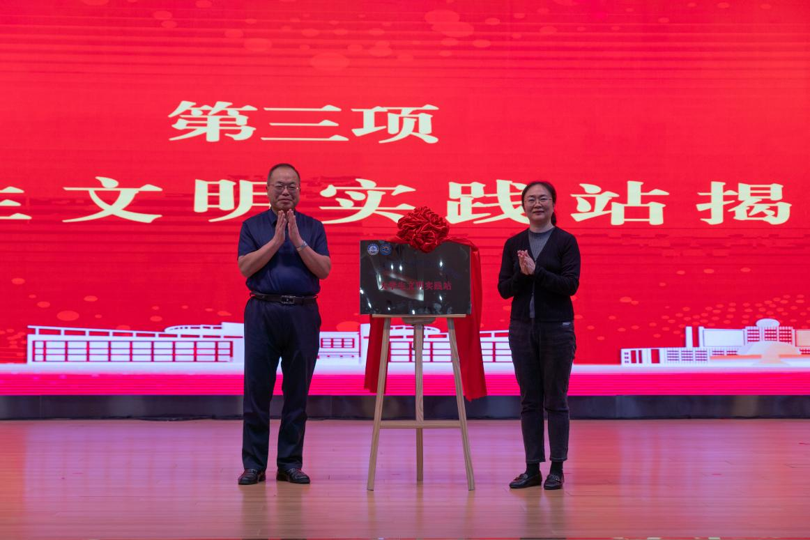 学校党委常委、副校长丁林与澳门十大信誉网赌大全院长何燕为学院大学生文明实践站揭牌。