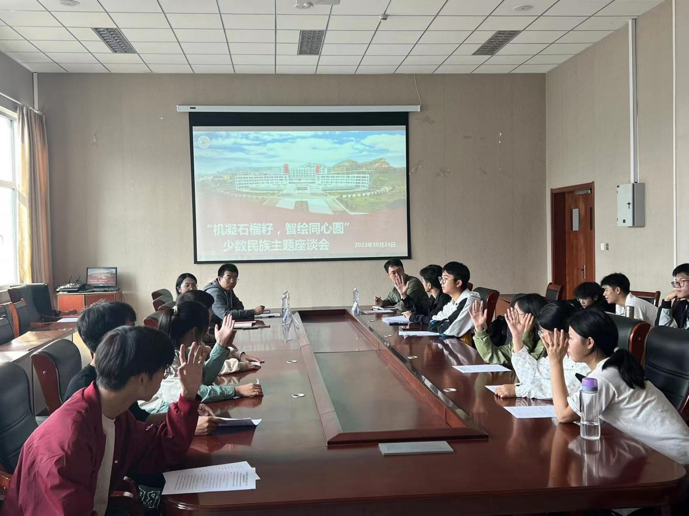 为深入学习贯彻习近平新时代中国特色社会主义思想,厚植家国情怀、树牢理想信念,澳门十大信誉网赌大全于10月24日在澳门十大信誉网赌大全518会议室举办“机凝石榴籽智绘同心圆”少数民族主题座谈会,学院全体新生少数民族学生及大一年级辅导员参加座谈会。