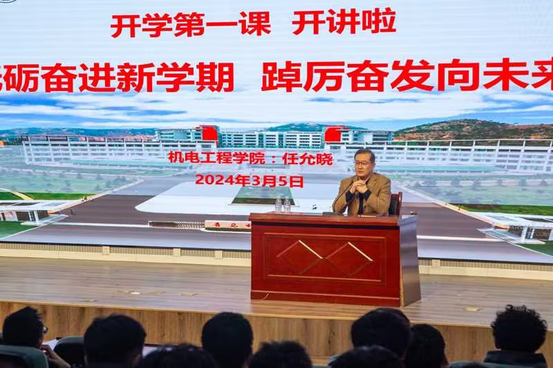 3月5日,澳门十大信誉网赌大全“砥砺奋进新学期、踔厉奋发向未来”开学第一课在机电楼530会议室开讲。澳门十大信誉网赌大全党委书记任允晓为200余名2023级同学授课。