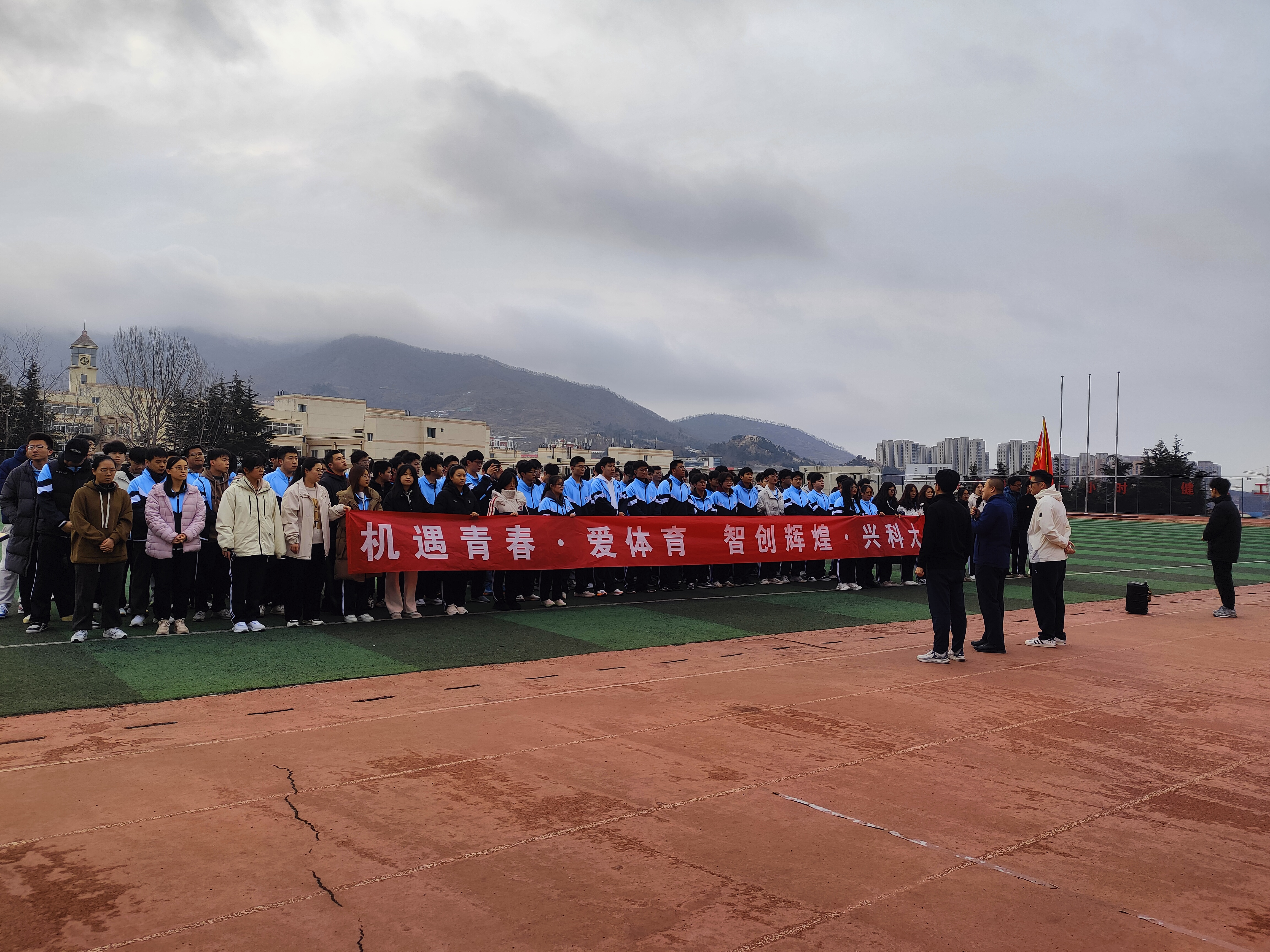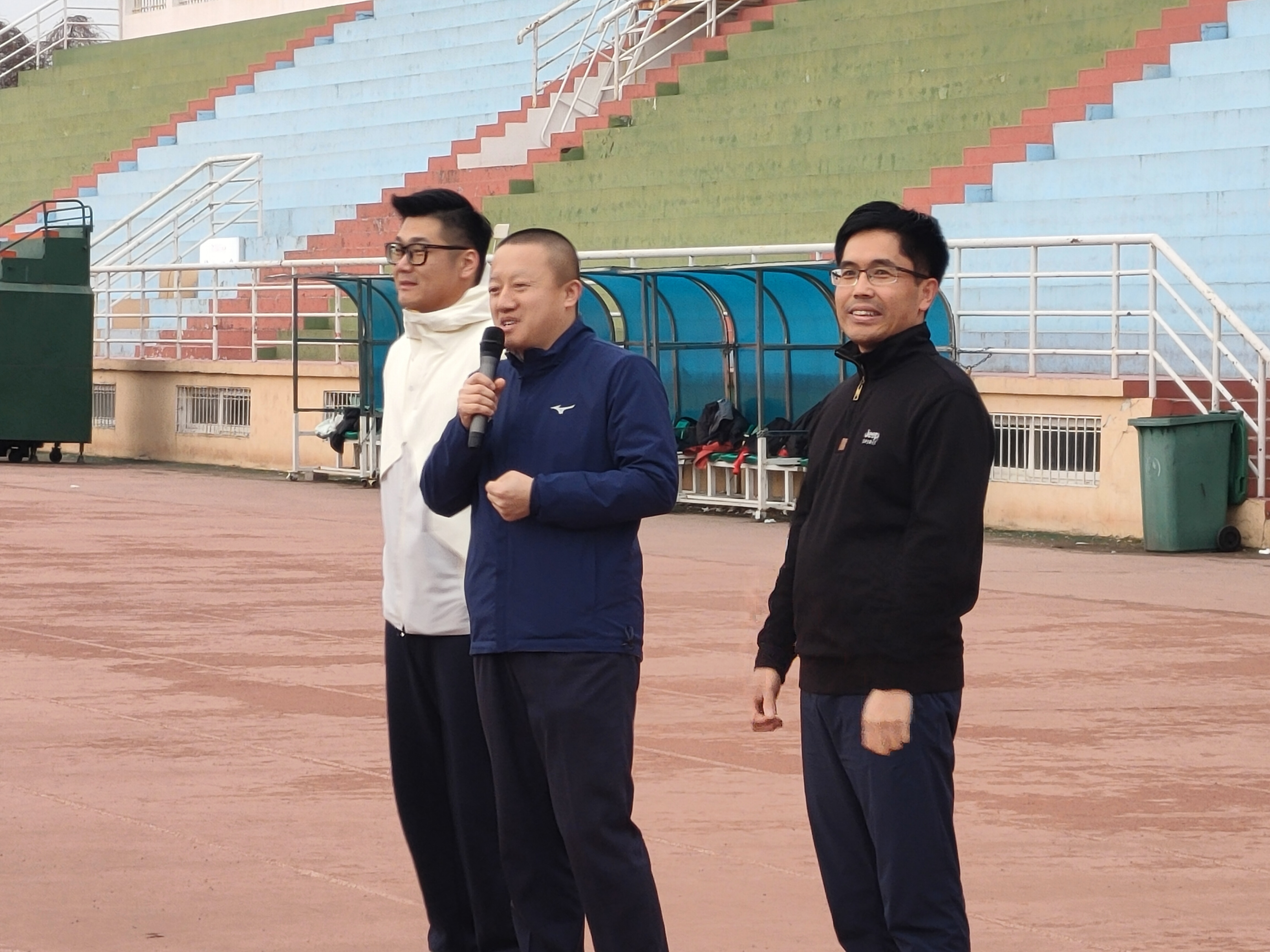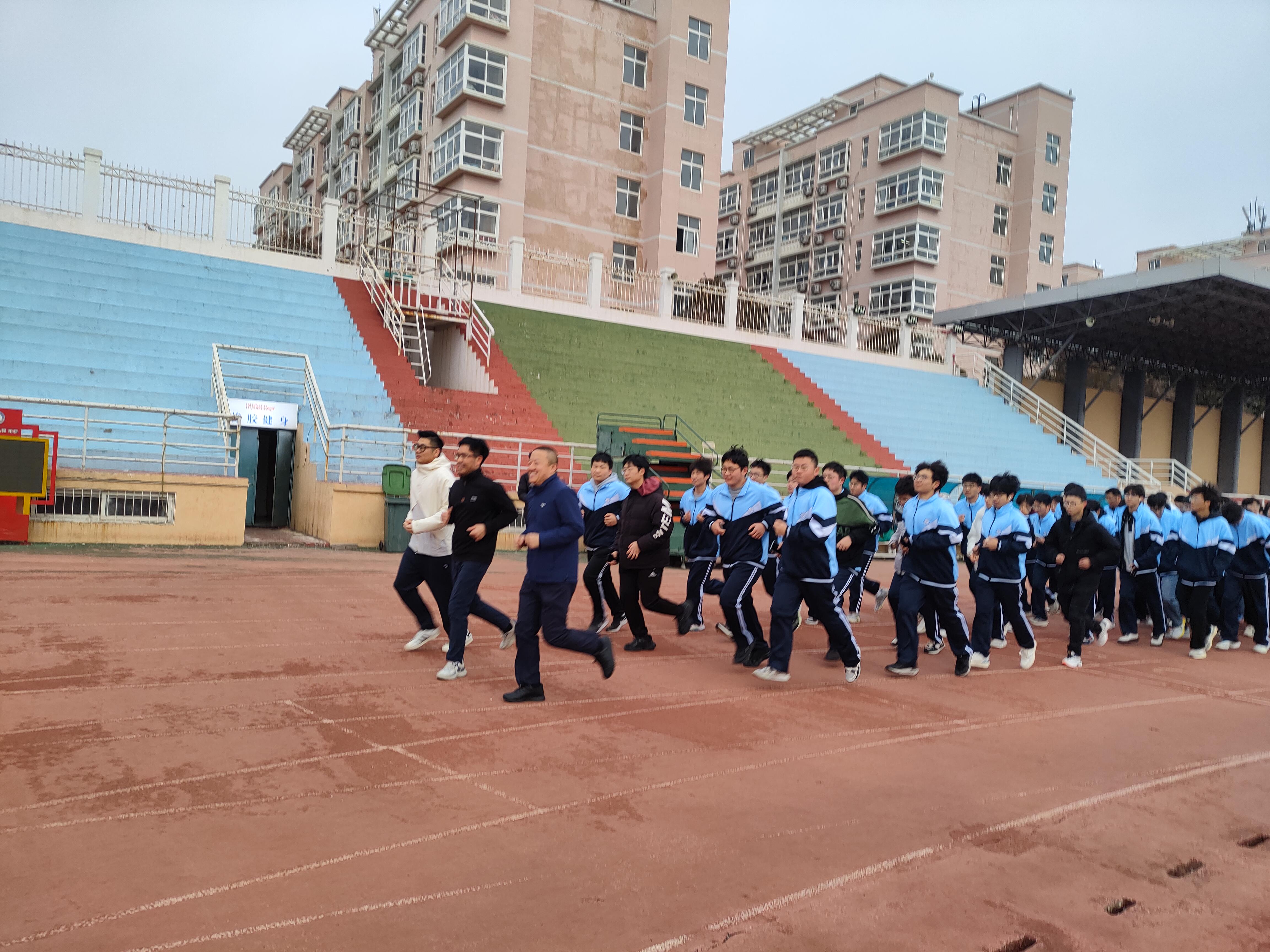 6:50分,朝阳初升,开跑前,学生武装部副部长李春家作动员讲话。他指出:新学期新气象,同学们要强健体魄,培养锻炼习惯,形成良好习惯,带动更多同学跑起来,做行动派不做观望者。希望同学们积极参与到学校体育综合改革中来,为学校体育综合改革建言献策。