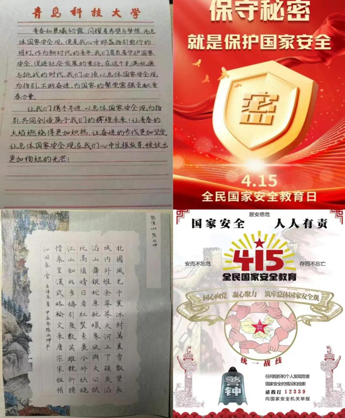 学院以“总体国家安全观在我心,吾辈青年当奋进”为主题,面向全院师生征集作品,引导同学们自觉成为国家安全宣传生力军。同学们积极响应,通过摄影、书法、绘画等多种形式,绘出自己心中的家国盛世,自觉成为国家安全宣传生力军。