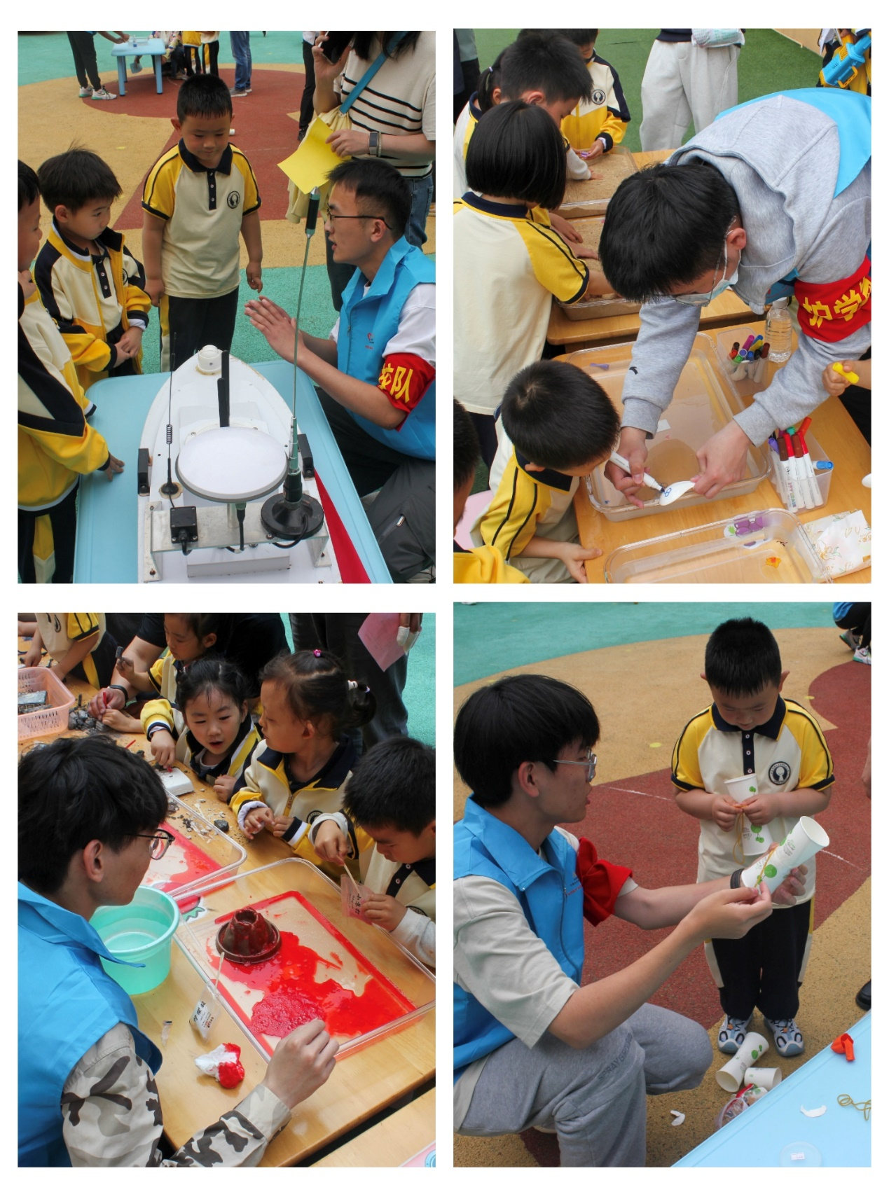 来自澳门十大信誉网赌大全青苗科技创新团队成员的志愿者们在学院教师的精心组织下,小朋友们井然有序地排队参观了一系列充满科技魅力的项目。他们首先参观了无人艇模型,随后进行了空气炮实验,接着又动手制作了纸杯飞机,体验了蜡烛吸水等科学小实验。在这一系列活动中,志愿者们耐心细致地为小朋友们讲解了其中的科学原理和知识,包括无人艇的精巧构造和工作原理,空气炮的内部结构以及运作机制,气体热胀冷缩的自然规律。每个小实验都引发了小朋友们浓厚的兴趣,他们聚精会神地观察实验现象,动手进行实践操作,并积极向志愿者们提出自己的疑问。现场氛围既热烈又活泼,充满了孩子们对科学知识的渴望和探索精神。