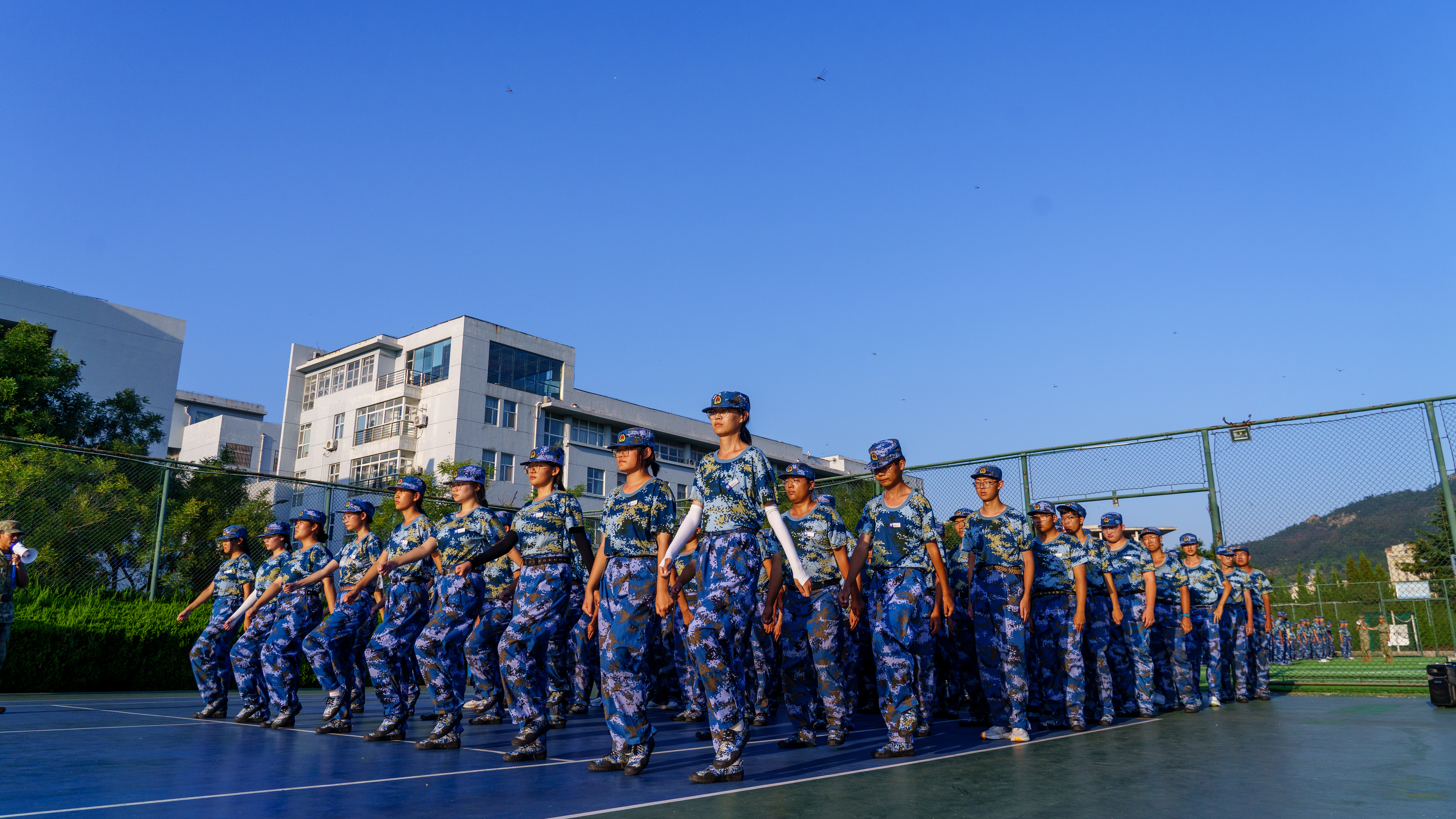 9月16日,在军训场,杨小明、学生处教育管理科管羽、学院军训教导员慰问学院军训连队承训官兵,感谢承训官兵对于机电学子的高质量军训,希望承训官兵在接下来的军训中,严格要求,高标准高质量完成军训各项任务,让机电学子把“团结紧张严肃活泼”的军训成果带到接下来的学习工作生活中。