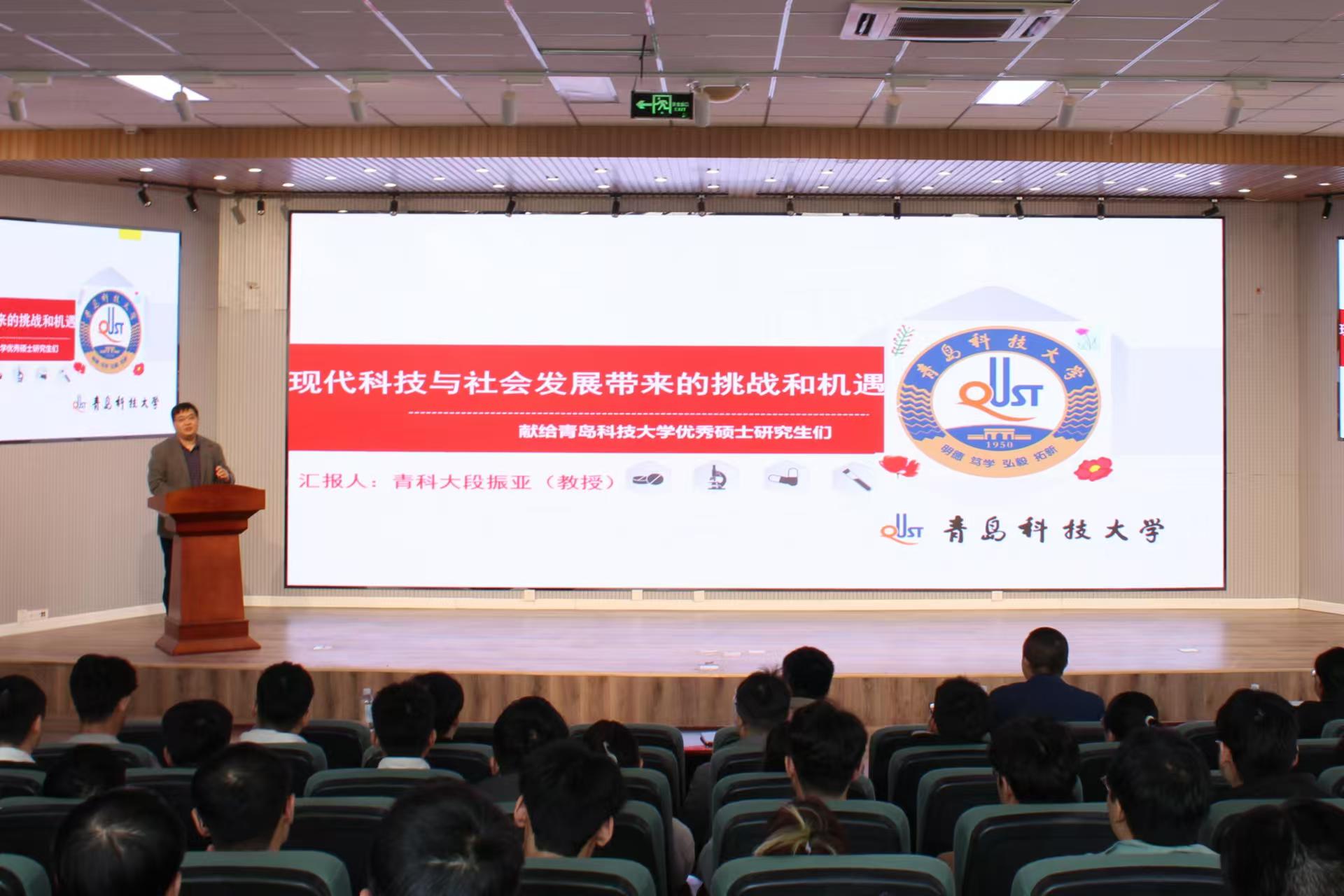 段振亚教授以“双碳政策所带来的挑战与机遇”为题,介绍了团队积极应对新挑战的举措,展示了在制药与精细化工领域所取得的卓越成果。段振亚特别强调,研究生应充分利用新兴的AI技术,将其与自身研究领域相结合,进一步深化研究,推动学术创新。最后,段振亚鼓励研究生要培养独立思考的能力,以青科大为平台,不断提升自己,脚踏实地,将理论知识转化为实际工程应用,为社会贡献力量。