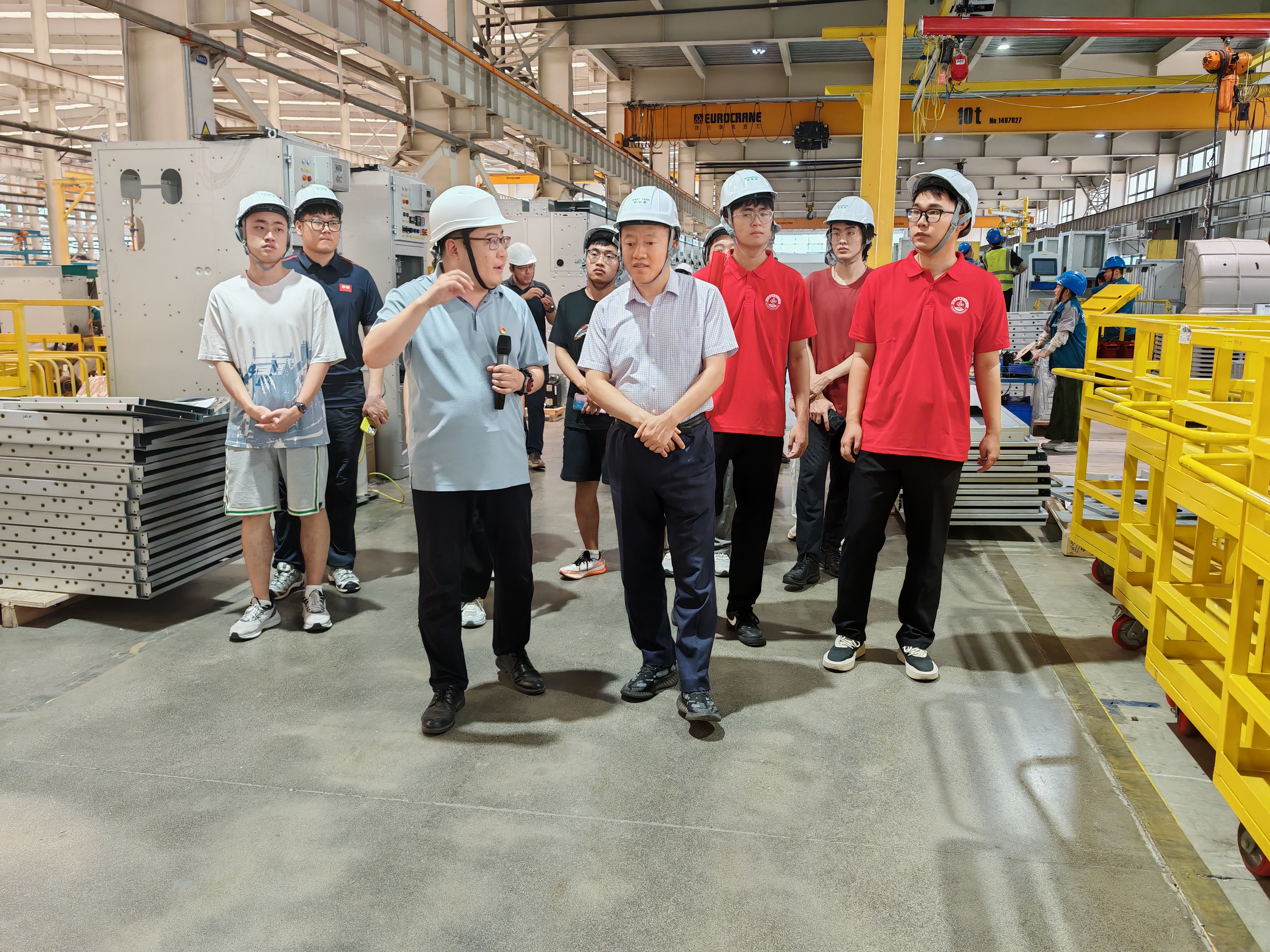 7月11日,澳门十大信誉网赌大全党委副书记兼副院长杨小明一行15人赴青岛特锐德电气股份有限公司胶州生产基地开展访企拓岗。特锐德电气股份有限公司技术数智化标准副总工程师王贵罡、人力资源中心总经理助理焦雪莹、人力资源中心校园招聘负责人董琛陪同调研,学院8名2026届毕业生参加活动。