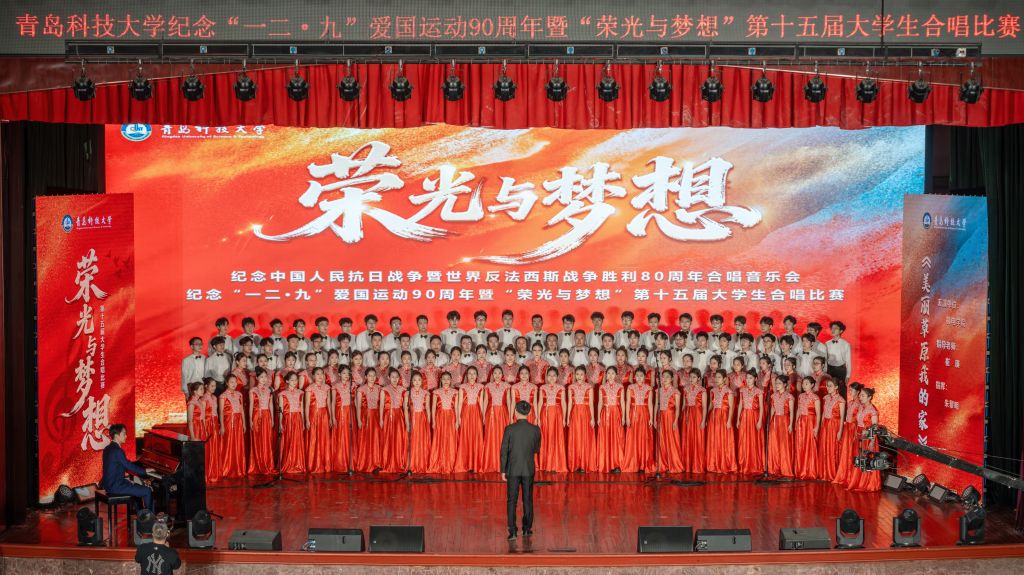 为纪念中国人民抗日战争暨世界反法西斯战争胜利80周年,缅怀“一二·九”爱国运动九十周年,弘扬伟大爱国主义精神,12月9日,澳门信誉最好十大平台“荣光与梦想”第十五届大学生合唱比赛在四方校区西礼堂庄严举行。来自全校21支参赛队伍用歌声追忆峥嵘岁月,以青春旋律奏响时代强音。经过激烈角逐,澳门十大信誉网赌大全凭借阿卡贝拉版《美丽的草原我的家》的深情演绎,获一等奖,实现三连冠,在历史与现实的交响中展现了新时代青年的精神传承与使命担当。