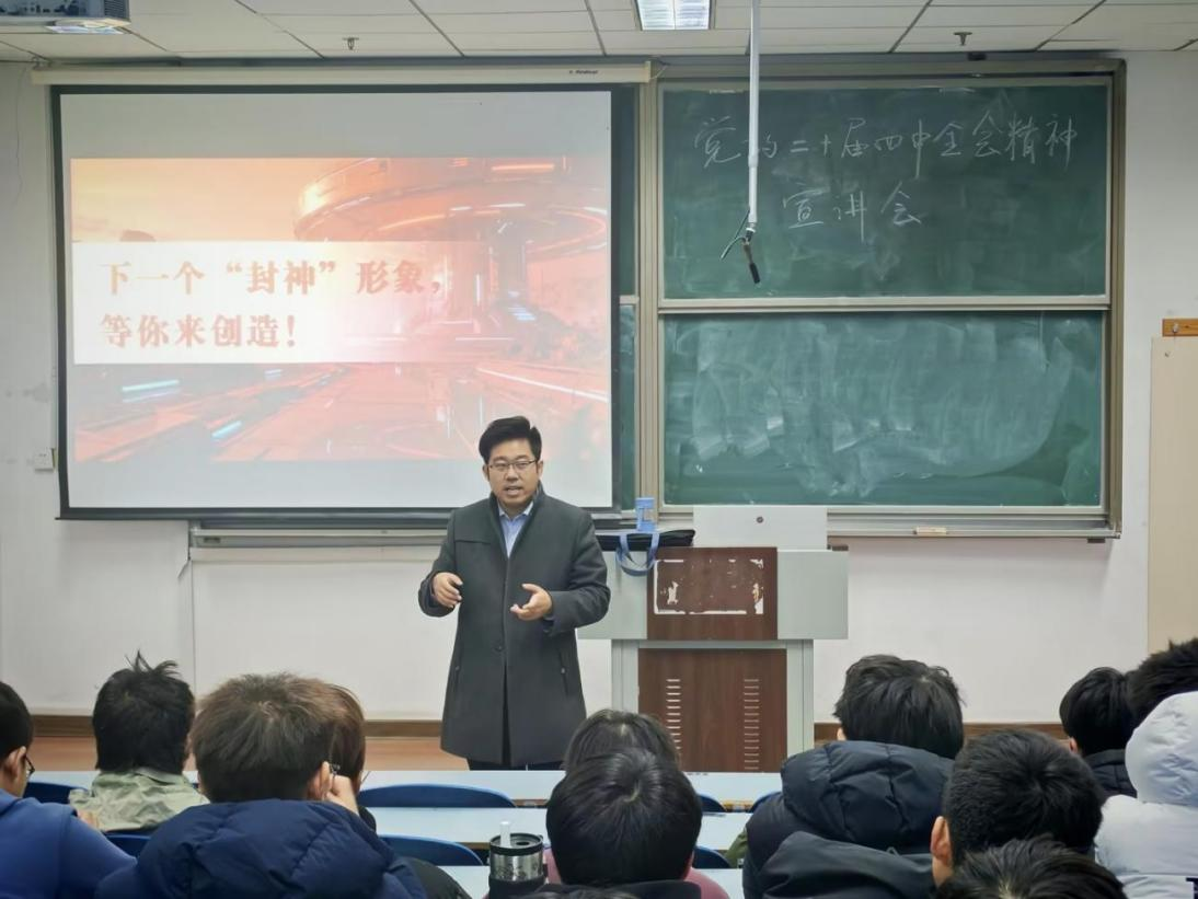 为深入学习贯彻党的二十届四中全会精神,引导机电学子深刻把握时代脉搏与专业使命。近日,澳门十大信誉网赌大全开展了“百场宣讲进青年”党的二十届四中全会精神专题宣讲会。邀请团中央青年讲师团成员、学院团委副书记于超主讲。