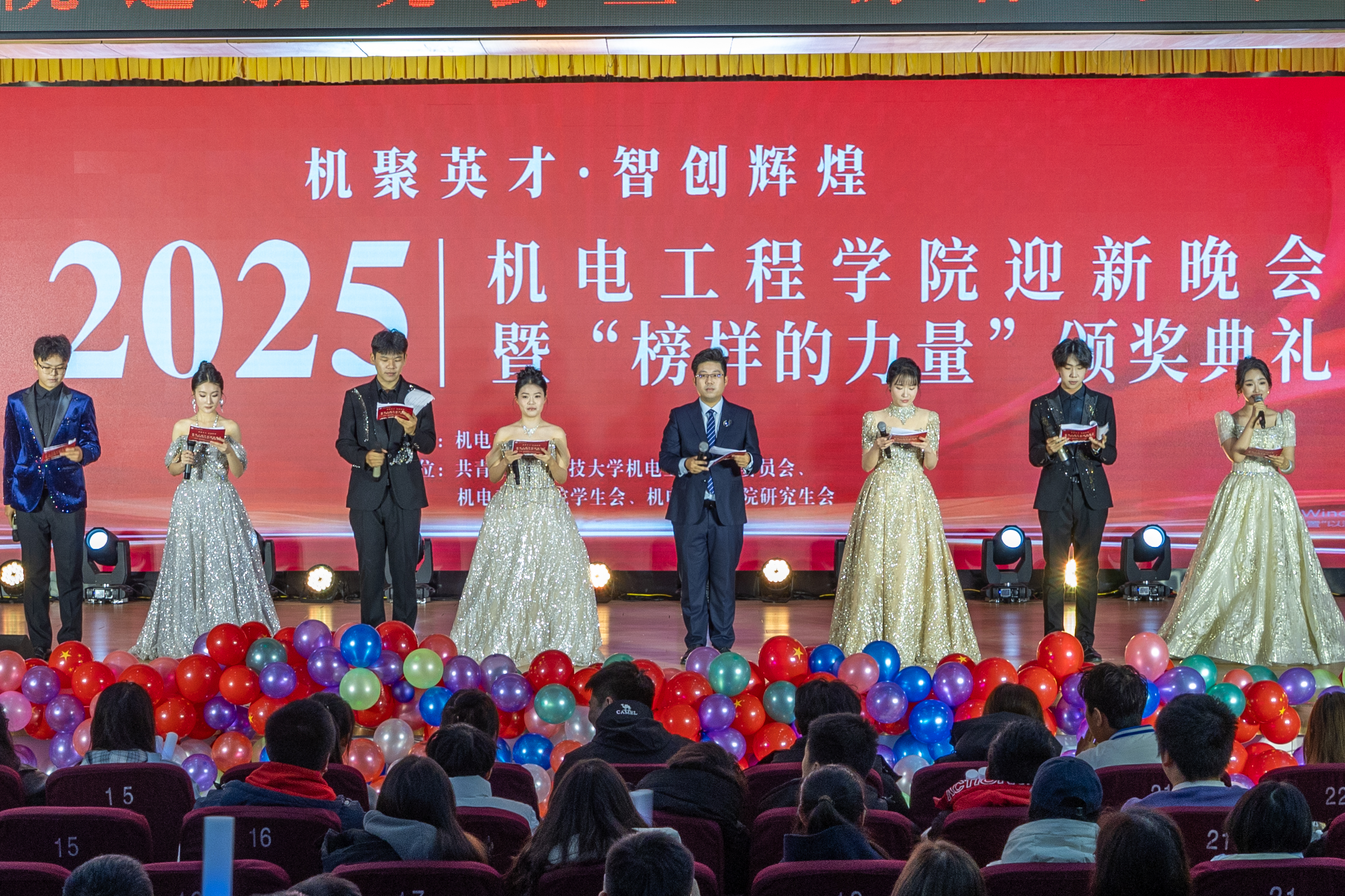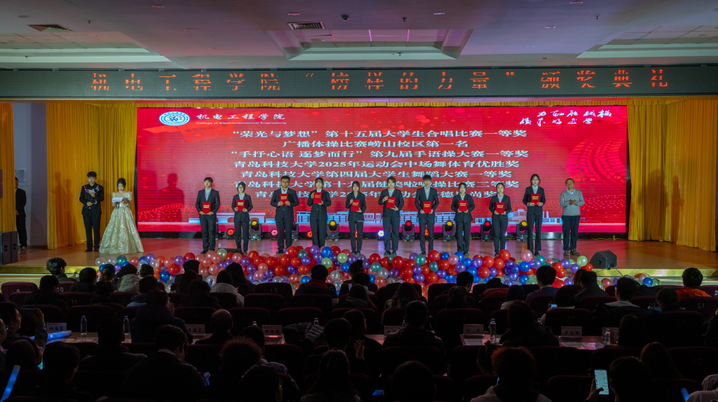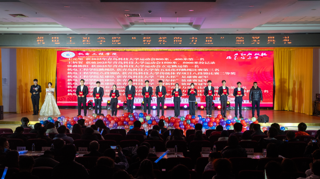 青春逢盛世,奋斗正当时。12月30日,澳门十大信誉网赌大全2025“机聚英才·智创辉煌”迎新晚会暨“榜样的力量”颁奖典礼在崂山校区第二报告厅举行。学校党委宣传部副部长、全国红润初心工作室负责人贾可好,学院党委副书记兼副院长杨小明、副院长杨化林、张卫锋、李剑光、刘治明,以及2025级班主任、系教研室主任、全体专兼职辅导员和2025级学生参加活动。