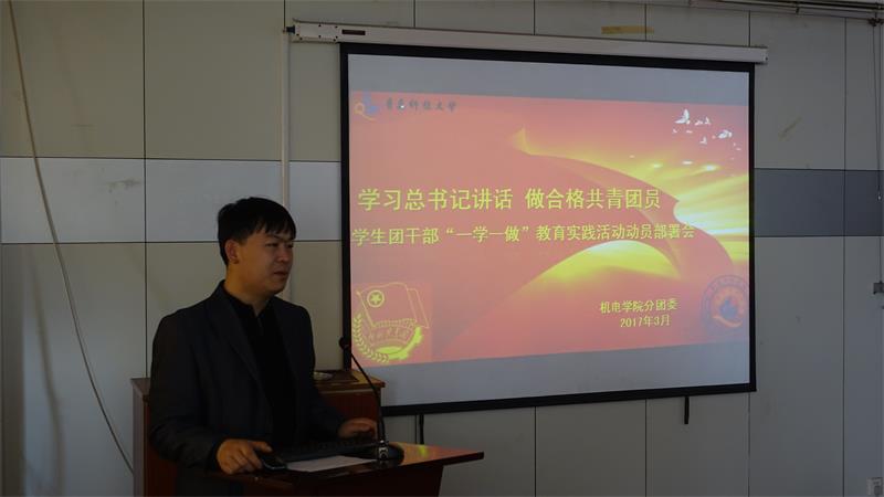 会上,秦洪庆传达了团中央、团省委、校团委关于“一学一做”教育实践活动的有关文件和会议精神,下发了《共青团中央关于在全团集中开展“学习总书记讲话 做合格共青团员”教育实践的通知》和“一学一做”视频资料。随后,要求各团支部召开全体团员会议安排部署“一学一做”教育实践活动,可以采取观看视频,原汁原味学习文件,学习部分习近平总书记重要讲话,切实提高团员青年的学习热情。
