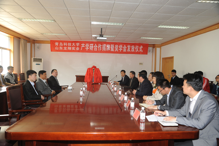 4月18日上午,澳门信誉最好十大平台龙翔实业研发中心揭牌暨“龙翔实业”奖学金发放仪式在经管学院楼313会议室举行。东营市利津县科技局局长陈树海,山东龙翔实业有限公司人力资源部总监王守涛、人力资源部主管刘建波,校学生处副处长秦姣,校科技处副处长刘尧,校团委副书记刘跃宁,学院党政领导汪传生、梁树清、张霄,澳门十大信誉网赌大全特聘顾问刘安祥等领导出席揭牌发放仪式。仪式由澳门十大信誉网赌大全副院长郭建章主持。