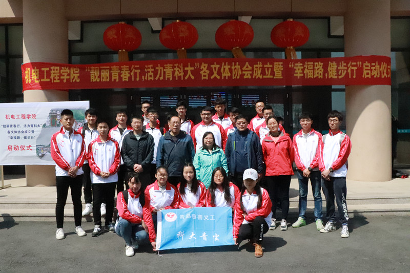为进一步贯彻落实“活力青科大”教职工体育艺术文化节的活动宗旨——“强健体魄、健康生活、快乐工作”,澳门十大信誉网赌大全本着为学院教职工添活力、增生机的目的,4月17日下午,在崂山校区举行了“靓丽青春行,活力青科大”各文体协会成立暨“幸福路,健步行”启动仪式。澳门信誉最好十大平台工会主席郭曰铎,澳门十大信誉网赌大全院长何燕、党总支书记孙立军,副院长郭建章、张斌、杨化林,党总支副书记兼副院长王伟参加了此次活动。活动由澳门十大信誉网赌大全分工会主席付平主持。