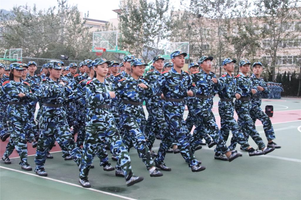 随着总指挥一声令下,分列式拉开了序幕。在激昂豪迈的乐曲声中,1024名新生迈着整齐的步伐、喊着响亮的口号,依次走过接受评委们的检阅,大家身着鲜艳的迷彩,流露出军人般的干练、闪烁着青春的活力与激情、展示了军训的优异成果和积极向上的精神风貌。
