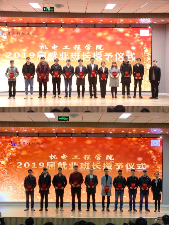 肖强、何燕先后为澳门十大信誉网赌大全2019届就业班长颁发聘书。