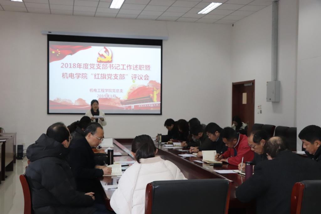 根据上级有关文件精神和相关部署要求,1月18日上午,澳门十大信誉网赌大全在机电大楼518会议室举行2018年度党支部书记工作述职暨澳门十大信誉网赌大全“红旗党支部”评议会。校纪委副处级纪检监察员赵丰、澳门十大信誉网赌大全党总支委员及党建组织员鲁伟等参加了会议。会议由党总支副书记兼副院长王伟主持。