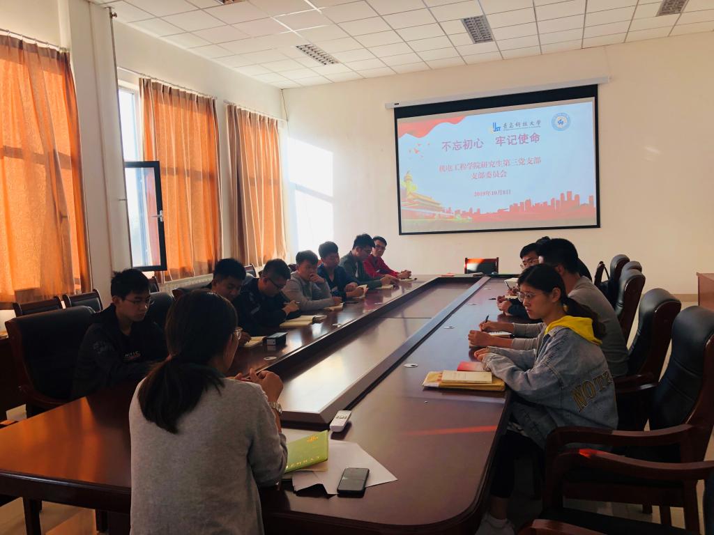 为认真贯彻落实学校“不忘初心、牢记使命”主题教育工作安排,激发研究生新生党员树立正确的人生观、价值观,强化自身的责任意识和使命担当精神,营造爱国爱校氛围、凝聚奋进力量,10月8日下午,澳门十大信誉网赌大全研究生第三党支部在机电楼518会议室召开 “不忘初心再出发,牢记使命勇担当”主题教育会议,澳门十大信誉网赌大全党总支副书记兼副院长王伟参加并主持了会议。