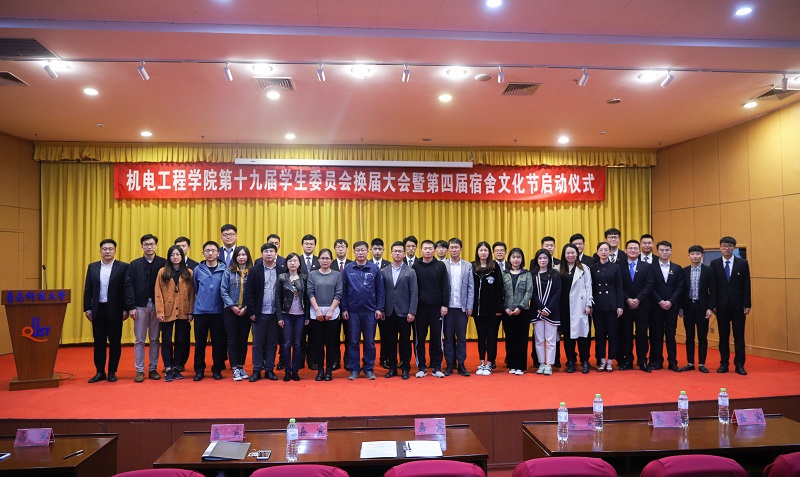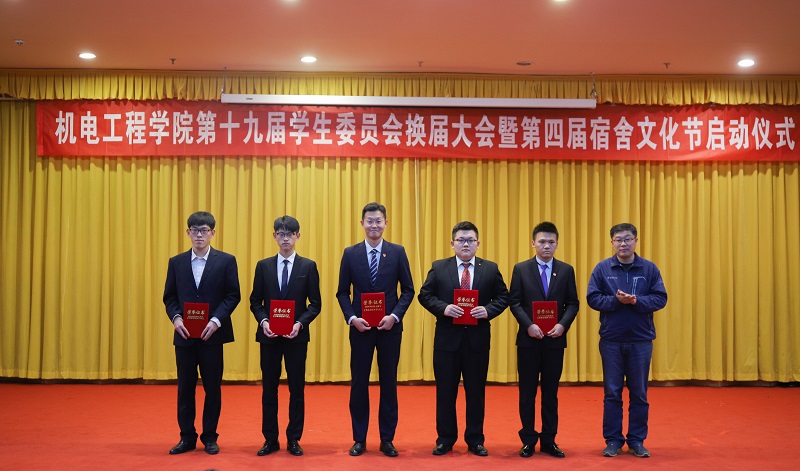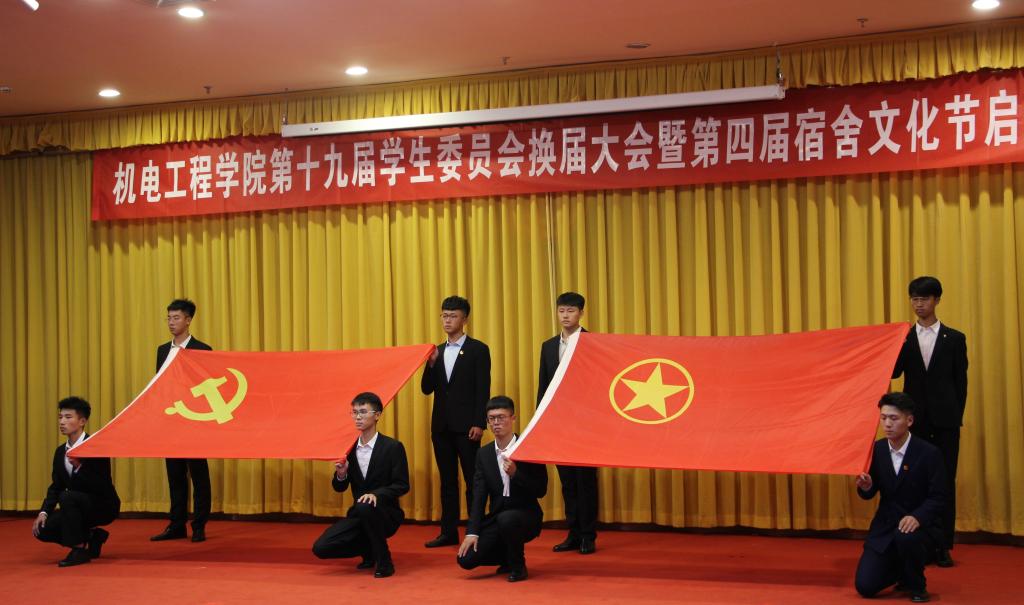 曲智强宣读《关于开办“扬宿舍文化,展机电风华”宿舍文化节活动的通知》。2019级新生代表王立瓒同学进行了表态发言。