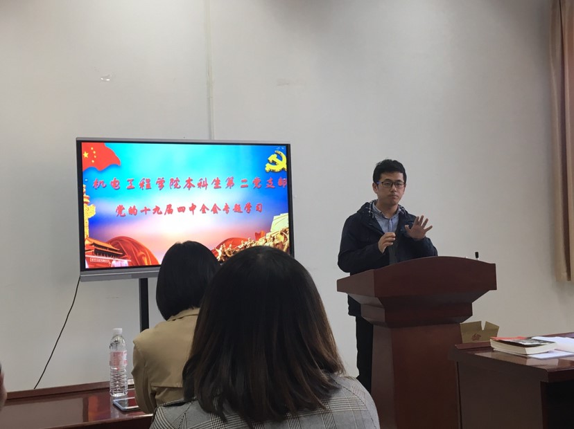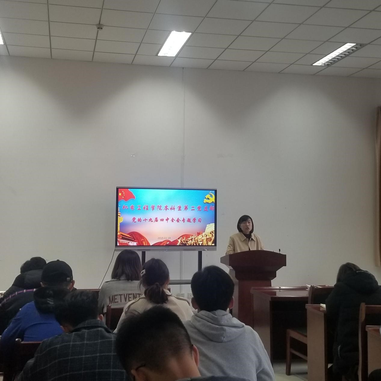 11月19日,澳门十大信誉网赌大全本科生第二党支部在机电大楼529召开了党的十九届四中全会专题学习,本次会议重点围绕习近平总书记在党的十九届四中全会上的报告和重要讲话的精神做交流发言,支部书记曲智强主持学习。