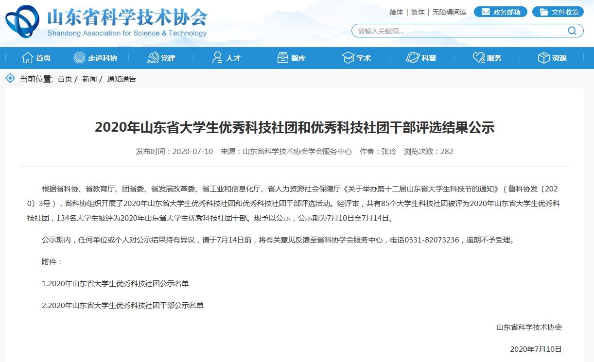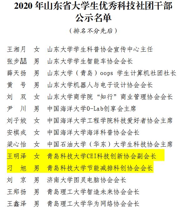 近日,根据省科协、省教育厅、团省委、省发展改革委、省工业和信息化厅、省人力资源社会保障厅《关于举办第十二届山东省大学生科技节的通知》(鲁科协发〔2020〕3号),省科协组织开展了2020年山东省大学生优秀科技社团和优秀科技社团干部评选活动。经评审,共有85个大学生科技社团被评为2020年山东省大学生优秀科技社团,134名大学生被评为2020年山东省大学生优秀科技社团干部。信誉网赌刁旭同学名列其中。