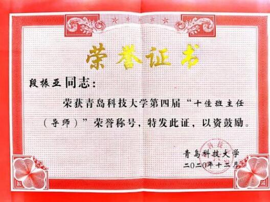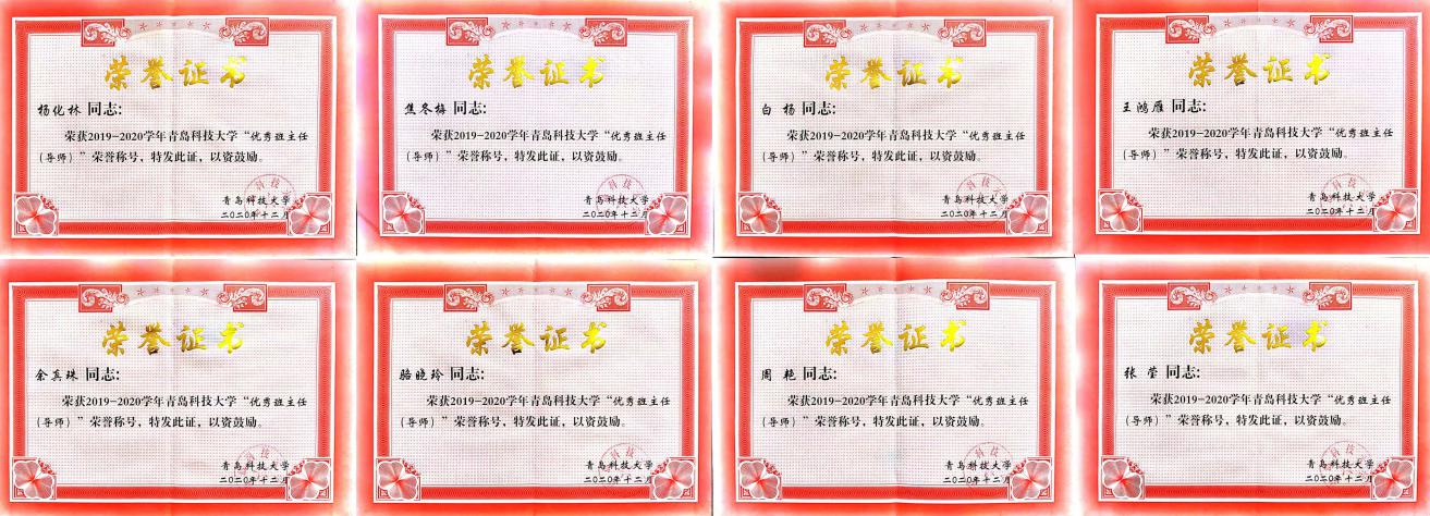 根据《澳门信誉最好十大平台十佳班主任(导师)评选办法》(青科大学字〔2014〕30号)相关规定,结合2018-2019学年、2019-2020学年班主任考核结果,经学院推荐,学生评议、网络投票和学校评审,学校共评选出十佳班主任10名、优秀班主任(导师)80名。其中,信誉网赌段振亚老师荣获澳门信誉最好十大平台第四届“十佳班主任(导师)”荣誉称号;杨化林、焦冬梅、白杨、王鸿雁、余真珠、骆晓玲、周艳、张莹八名老师荣获澳门信誉最好十大平台“优秀班主任(导师)”荣誉称号。