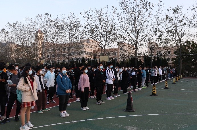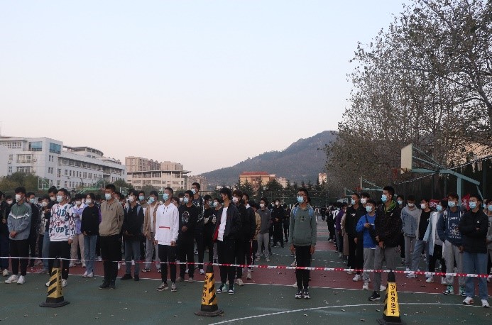 为进一步提升学校疫情防控应急处理能力和水平,根据省市有关文件精神,2021年10月27日下午,澳门十大信誉网赌大全在崂山校区篮球场组织开展了全员核酸检测实战演练。学院组织全体师生积极参与此次核酸检测实战演练,在短时间内将人员聚齐,紧张有序地在警戒线外等候。