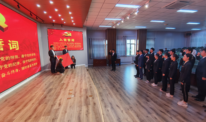 转正党员代表马晓东领誓,全体党员重温誓词并庄严宣誓。