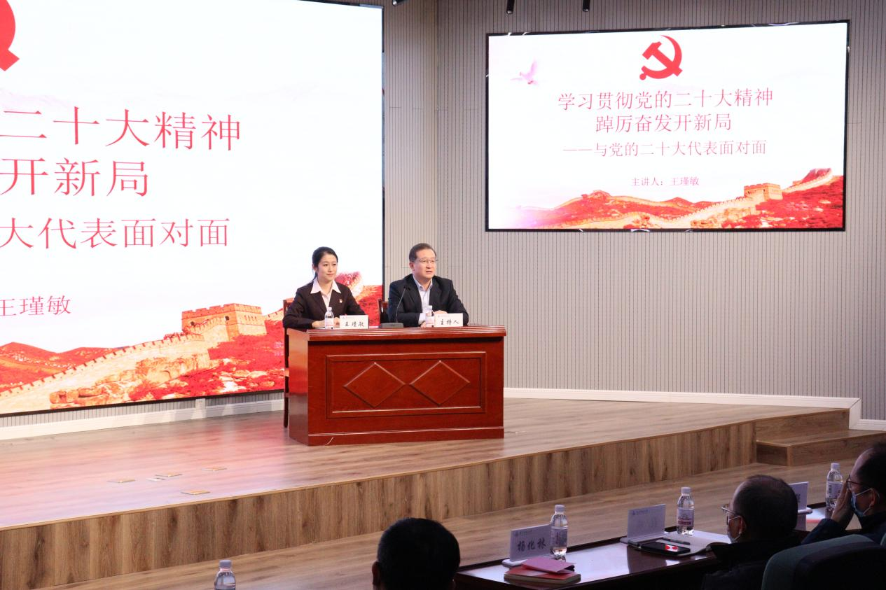 党的二十大代表王瑾敏以《让青春在火热实践中绽放绚丽之花》为题作党的二十大精神宣讲。她从自身参加党的二十大的经历感受出发,用真切的情感、鲜活的事例、生动的语言回顾了党的二十大盛况、系统阐释了党的二十大精神内涵,分享参加党的二十大的所见所感所思所悟,展示了奋斗在基层一线、在平凡岗位上铸就不平凡业绩的二十大代表的闪光形象。宣讲主题鲜明、内涵丰富、思想深刻、鼓舞人心,为澳门十大信誉网赌大全干部师生带来了丰厚的理论滋养。作为亲身经历党的二十大盛会的代表,王瑾敏结合自身实际,勉励学院师生要学深悟透报告精神、身体力行做好贯彻落实,并以青年人的视角鼓励学院师生要坚定理想信念,敢想敢为,善作善成。