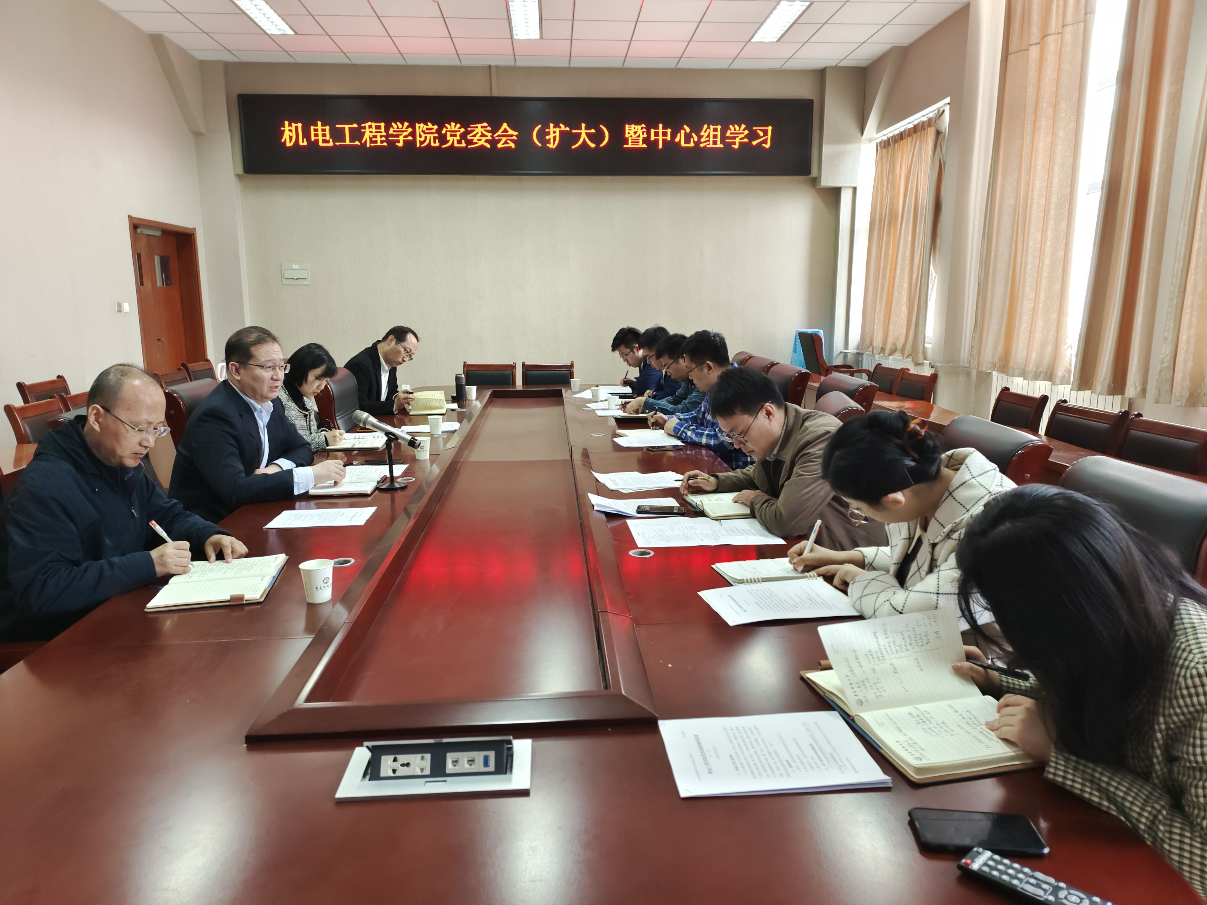 4月14日上午,澳门十大信誉网赌大全党委在机电楼518会议室召开学院党委理论学习中心组(扩大)学习会传达学习贯彻习近平新时代中国特色社会主义思想主题教育动员部署会精神。学院党委理论学习中心组成员、党支部书记及部分专职辅导员参加会议,会议由学院党委书记任允晓主持。