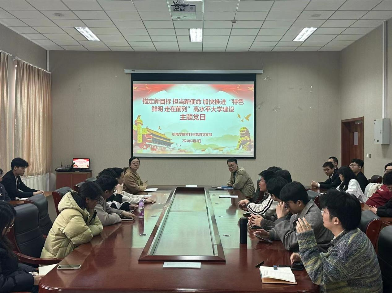 3月13日,澳门十大信誉网赌大全本科生第四党支部召开“锚定新目标,担当新使命,加快推进‘特色鲜明、走在前列’高水平大学建设”主题党日活动。