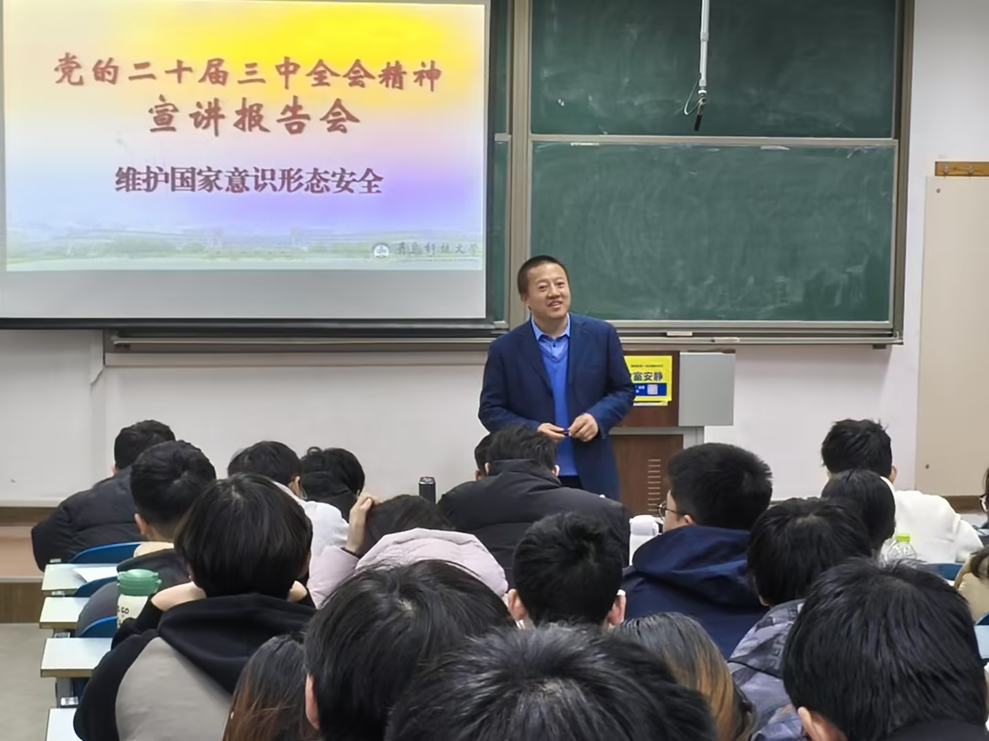 12月4日,学院学习宣传贯彻党的二十届三中全会精神宣讲报告会在明德楼220教室举行,校“传新科大”宣讲团成员、学院党委副书记杨小明主讲。澳门十大信誉网赌大全100余名团支书班长参加报告会。