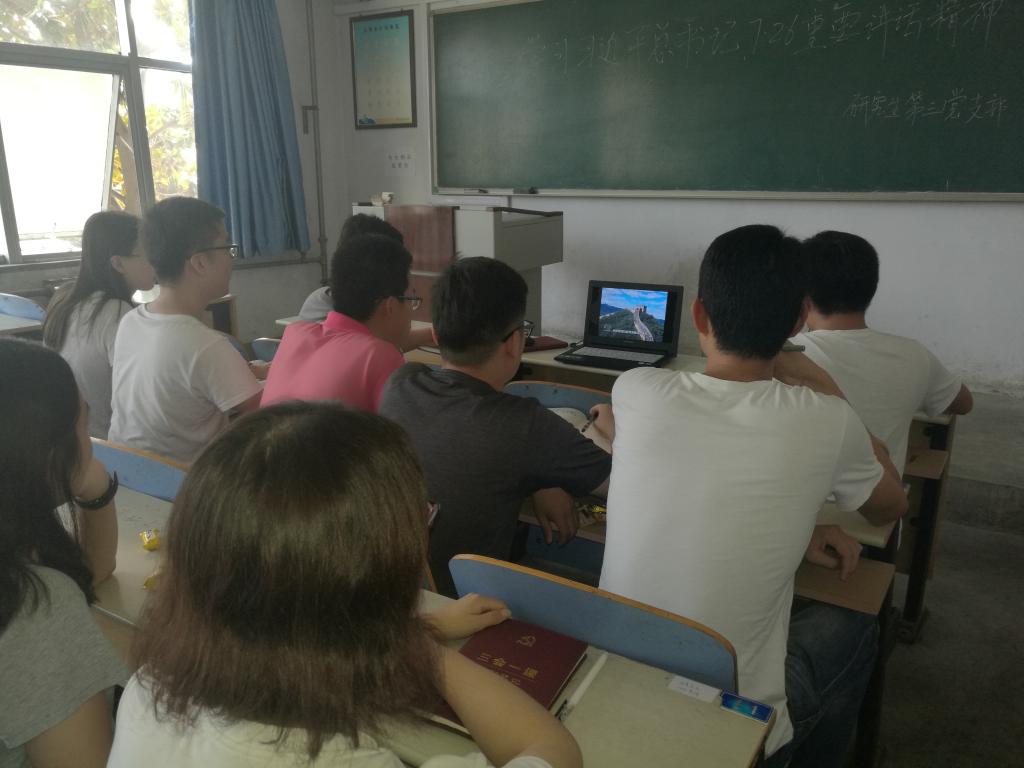 会上,支部全体成员认真观看并学习了习近平总书记的重要讲话,并简要发表个人学习心得,承诺将会高举中国特色社会主义伟大旗帜,迎接十九大的到来,为决胜全面小康社会实现中国梦而奋斗。
