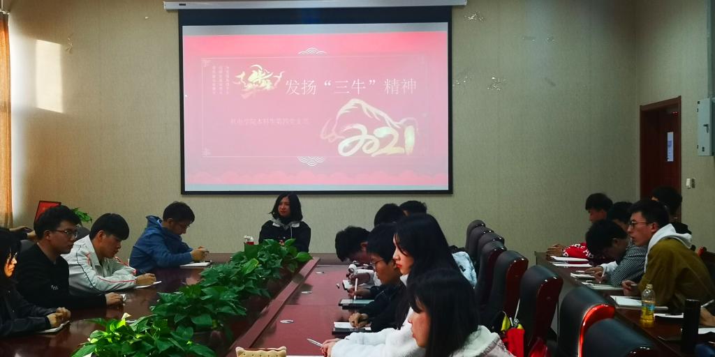 3月23日,结合习近平总书记日前在全国政协新年茶话会上的讲话精神,澳门十大信誉网赌大全本科生第四党支部召开“发扬”三牛”精神,凝心聚力干事,全面开创学校高质量发展新局面”主题党日活动。会议由党支部书记孙坤岩主持。