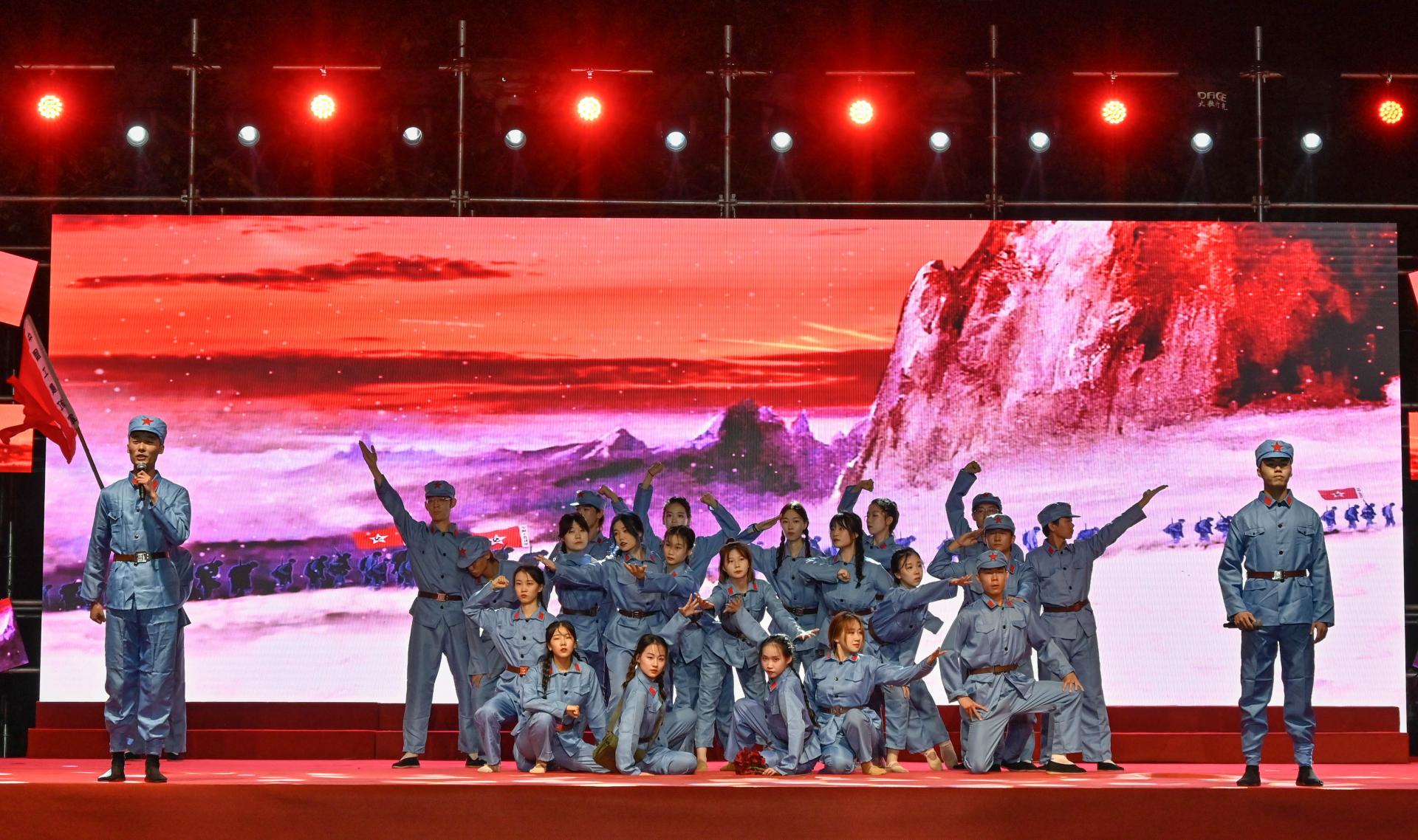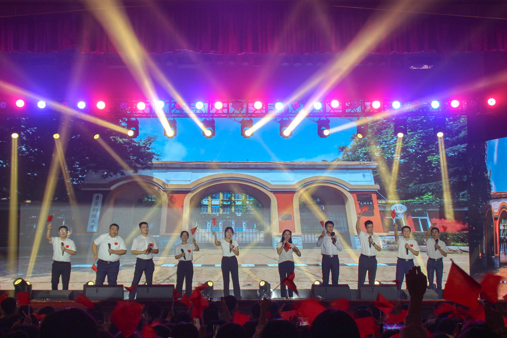 晚会分为《科大情》《奋斗路》《强国梦》三个篇章,共演出三场,累计500余名师生通过歌曲、舞蹈、音画诗等形式庆祝中国共产党成立100周年,庆祝伟大祖国72华诞,为全校10000余名新生送上祝福。整场晚会讲述了“精彩纷呈、触动灵魂”的科大故事,传递了“爱校荣校、奋斗成才”的正能量,唱响了“请党放心、强国有我”的主旋律,为全体2021级新生呈现了一场“有魂、有料、有彩” 的思政大课。