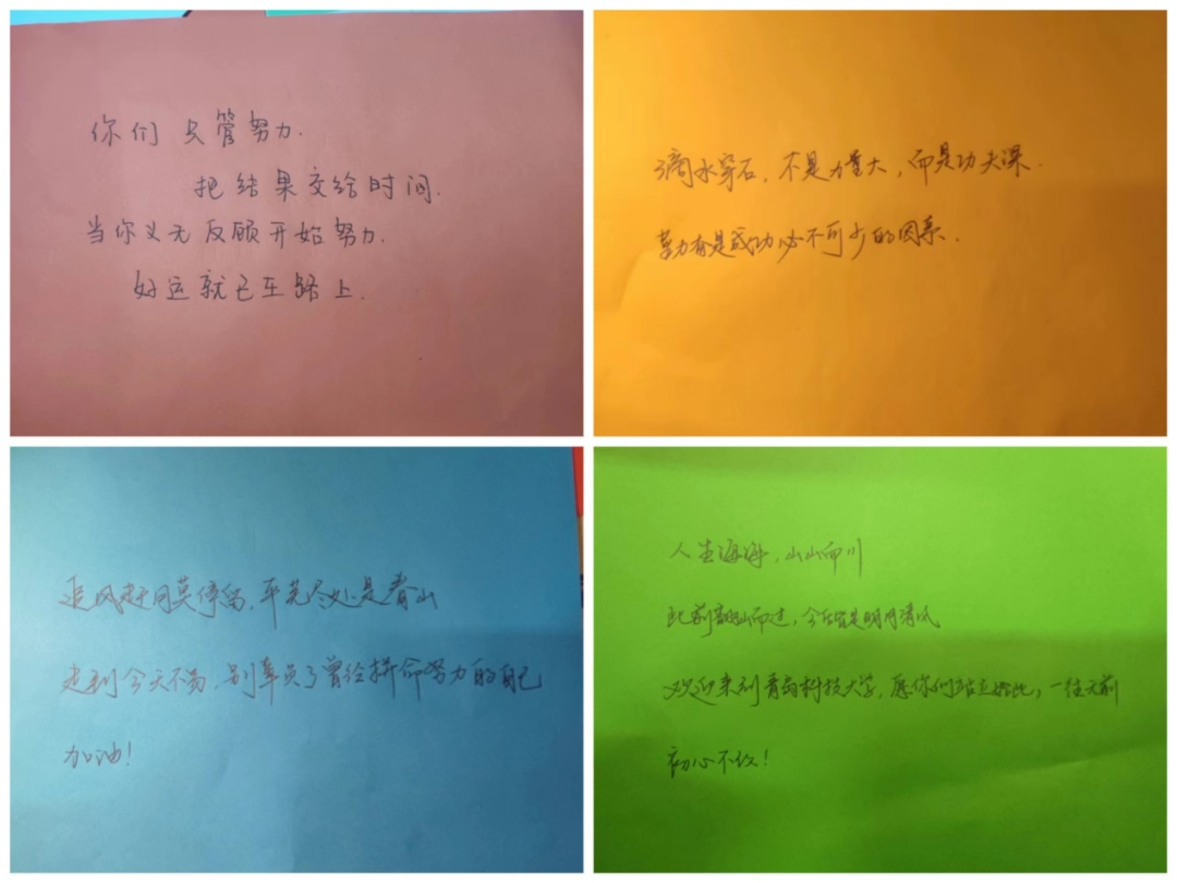 活动第二项,澳门十大信誉网赌大全孙坤岩、王作辉、宋达、穆青青老师对新生们写下寄语,“师情献语暖人心”每一位老师都倾心呵护自己的学生,每一位老师都对自己的学生有无尽的言语要表达。由多位辅导员亲笔临写祝福语和期望话,表达对学生们的关切,也是希望同学们不辜负大学四年生活,通过现在努力,创造自己的美好未来。浏览完辅导员的寄语后,在场的每一位同学心中都涌入一股暖流,进一步巩固了师生情谊。