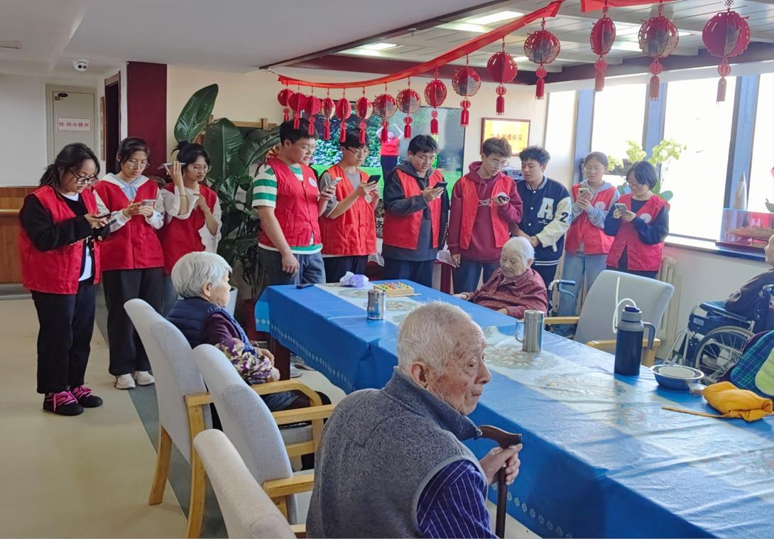活动开始,志愿者们详细地了解老人们的身体状态和日常生活情况,嘱咐他们要保重身体、注意添衣保暖。活动中,志愿者们与老人们亲切交流,陪老人们唱歌、下象棋、做游戏。活动期间,志愿者们为老人献上歌曲《好运来》,“你勤劳生活美、你健康春常在、你一生的忙碌为了笑逐颜开~”一声声嘹亮的歌声,一句句美好的歌词,传递出对老人们的祝福和关怀。