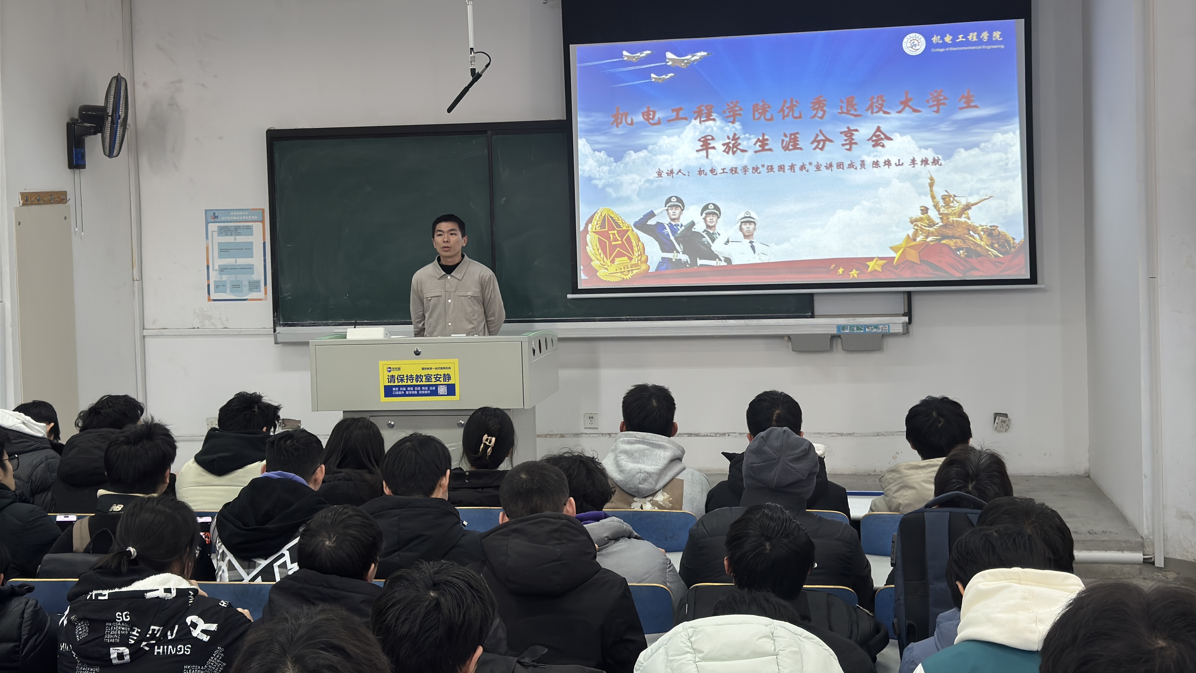 为进一步弘扬爱国主义精神,深化国防教育内涵,鼓励广大学生投身国防事业,澳门十大信誉网赌大全于11月10日下午在弘毅楼E201举行了“机逐青春 智戎有我”优秀退役大学生军旅生涯分享会,澳门十大信誉网赌大全“强国有我”宣讲团成员陈绵山、李维航和全院师生代表参加活动。