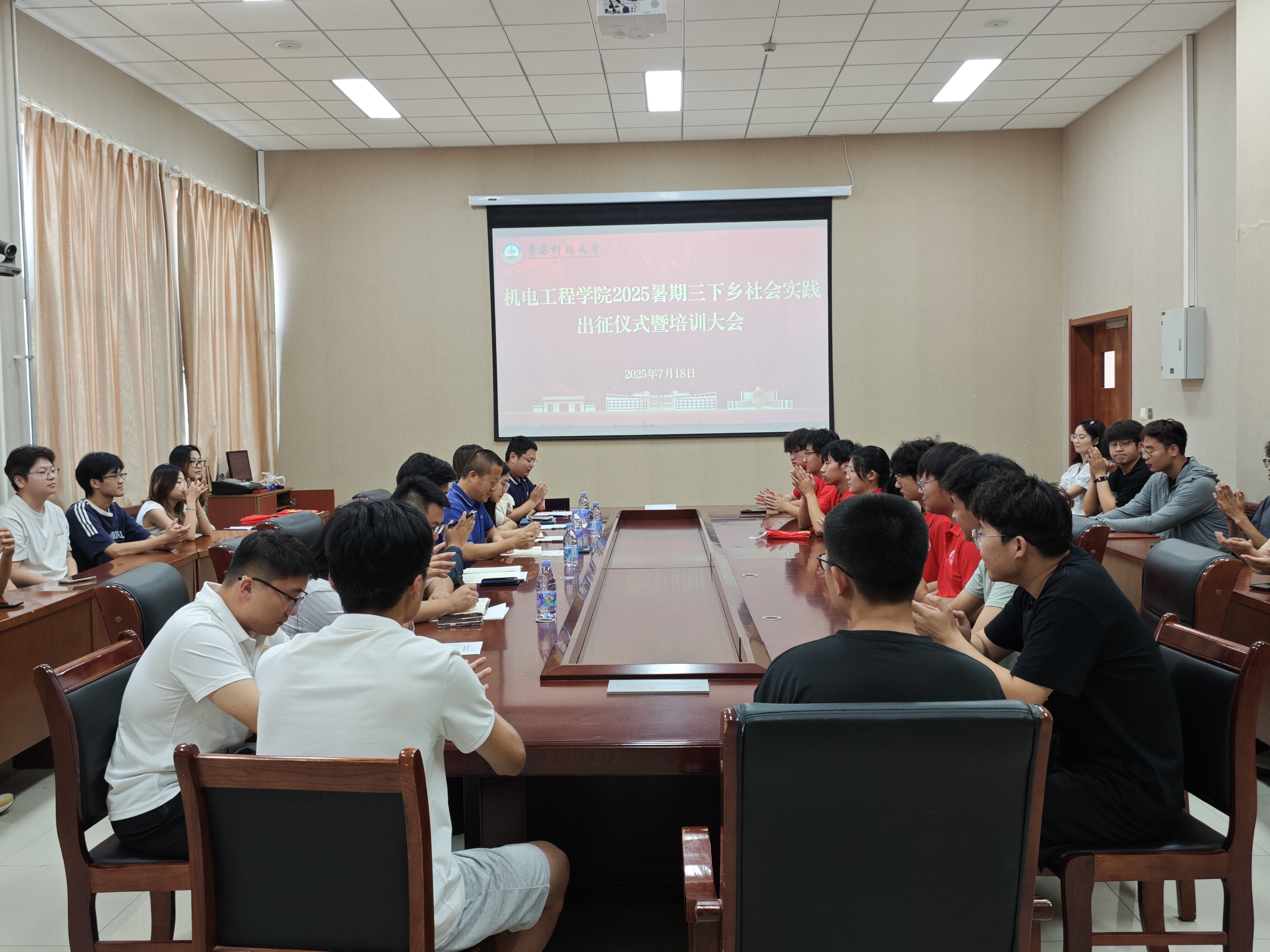 7月18日,澳门十大信誉网赌大全在D3-518会议室举行2025年暑期“三下乡”社会实践出征仪式暨安全、技能培训会。学院党委副书记兼副院长杨小明,团委副书记李慧敏、于超,实践团队指导老师及学院校级、院级重点队学生代表参加会议。