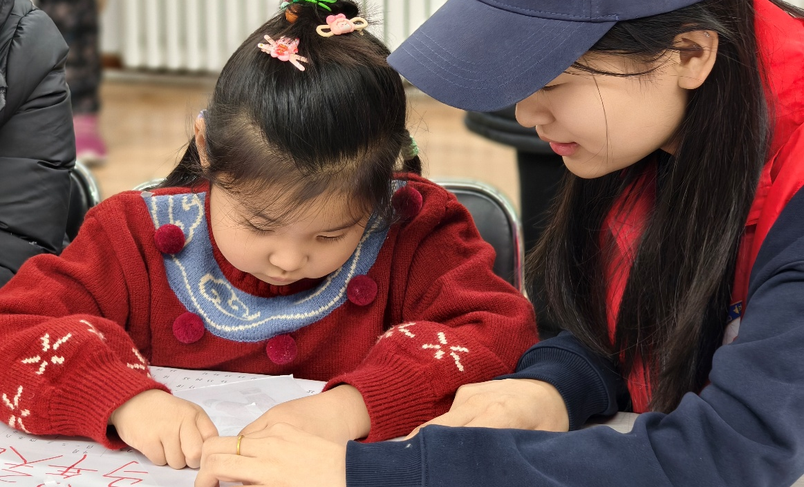 在年历制作环节,志愿者们为每个家庭分发了精心准备的材料包。支部成员孙宇涵、鲁璇等人耐心演示了年历的装订、月份页排列以及日期标注的基本方法。小朋友们在与志愿者和家长的共同协作下,认真折叠、粘贴、绘画,将一张张空白的纸页逐渐变成一本本独具个性的手工年历。许多孩子发挥奇思妙想,用彩笔在日期格子旁画上了可爱的天气图标、节日图案或每日小计划,创作属于自己的“时间规划局”。