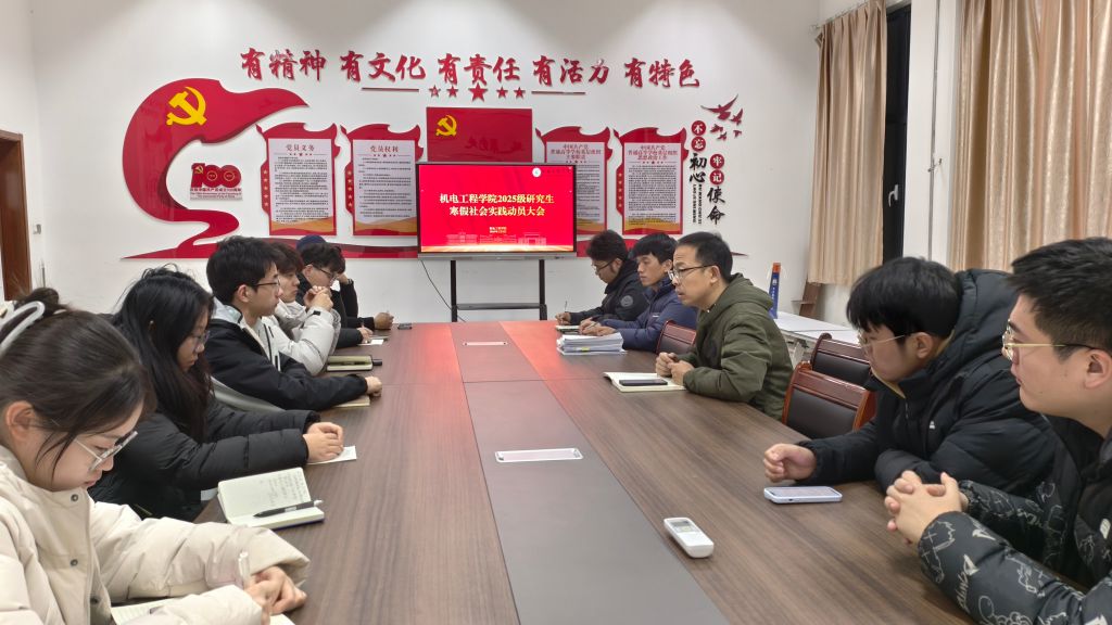 此次动员会的召开,为学院研究生2026年寒假社会实践工作明确了方向、凝聚了力量。下一步,学院将持续强化学生工作的组织协调与服务保障功能,推动实践活动走深走实,引导广大机电青年学生以实际行动践行青春使命,在中国式现代化建设的生动实践中书写机电青春答卷。(一审:逄柏鹏;二审:周韫涵;三审:杨小明)