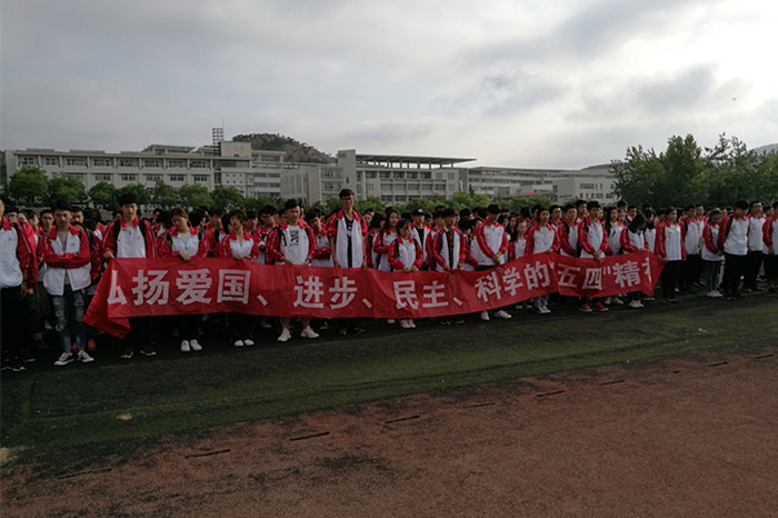 同学们六点三十分集结在田径场东面的篮球场地,在经历过短暂的调整队伍后,于六点五十分迈着整齐的步伐一同走向国旗台。七点整,迎着清晨的第一缕阳光,国旗护卫队脚踏坚定的步伐、伴随着整齐的口号缓缓走向国旗台。大会进行第二项,升国旗、奏国歌。全体人员听到乐声起,唱国歌,国旗护卫队全体人员敬礼,全体同学行注目礼,升旗手、护旗手将国旗徐徐升起。注视着五星红旗冉冉升起,同学们心中的骄傲感与自豪感油然而生,心中充满了对祖国的无限热爱与崇高敬意。第三项,由来自体育学院的五四青年代表讲话,倡导同学们牢记当代大学生应有的社会责任感与历史使命感,不忘前辈先烈的英勇奋斗与无私奉献精神。