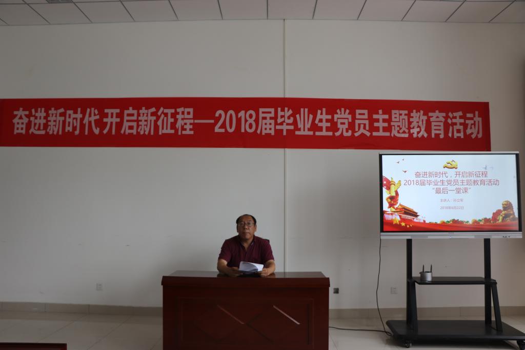6月22日下午,澳门十大信誉网赌大全2018届毕业生党员最后一次党课在澳门十大信誉网赌大全楼529会议室举行,党课由澳门十大信誉网赌大全党总支书记孙立军主讲,学生第一党支部书记王作辉主持。60多名2018届毕业生党员参加了党课活动。