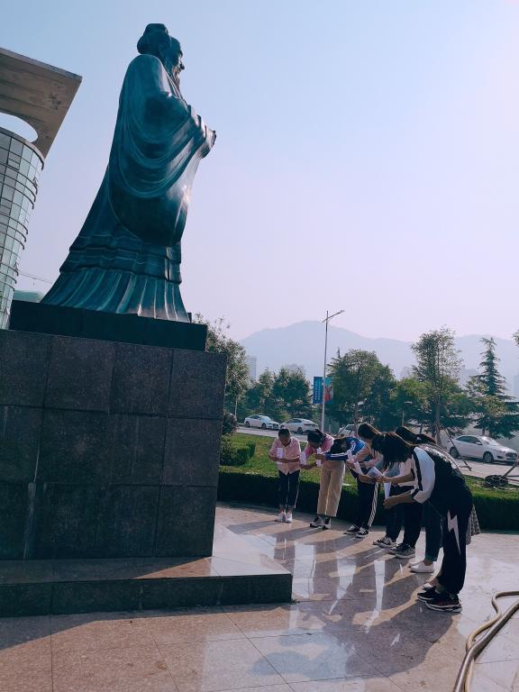 9月28日早,大地还残留着一丝盛夏未完全褪去的炙热余温、晨光还未撒遍校园,为了传承经典的儒学文化,体悟深刻切实的儒学精神,纪念孔子诞辰2569周年,来自高机专业的9位女生已早早地站在了孔夫子像前,为她们的纪念活动做着准备。