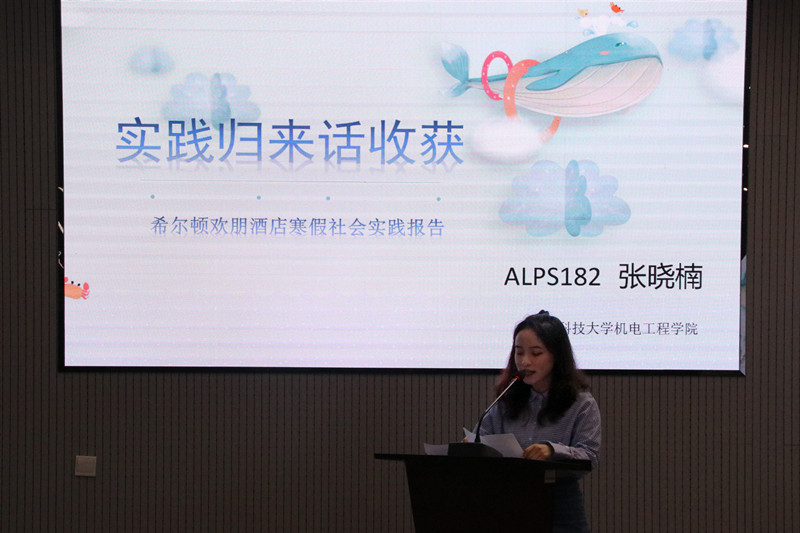 大会正式开始,首先展示了数名优秀同学的推介卡,让大家看到了他们实践过程中的认真态度。之后又展示了获奖同学的优秀实践报告,让同学们真切体会到获奖同学的辛苦付出。精彩的展示过后,苗清老师宣读了对优秀同学的表彰决定。在掌声中,张晓楠、籍翔宇、陈明威等同学先后上台讲述实践经历,认真细致又富有幽默感的讲述吸引了同学们的注意,同学们专注的聆听就是对他们努力的肯定。随后,在同学们的掌声与校歌声中,本次大会圆满结束。