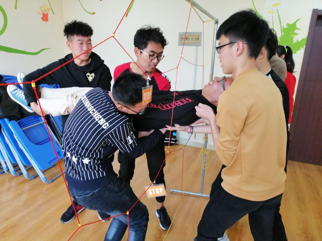 接下来,团辅进行第二环节,要求所有学生团结协作去通关“穿越电网”游戏。学生们接到任务后,积极地发表自己的意见,尝试各种可行的方案,这个游戏很好地考验了学生的团结协作能力,让学生体验到团体的重要性。游戏过后,老师与学生坐回原位置,依次就这场小游戏讲述各自的观点和看法。学生们积极发言,各抒己见。