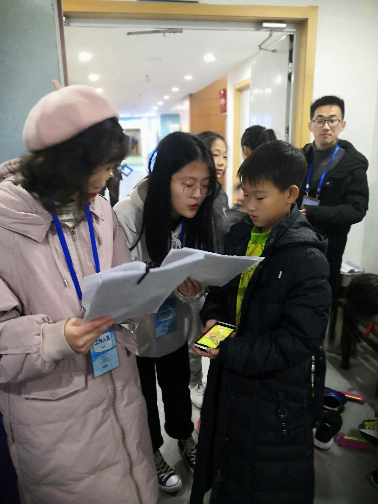 在负责老师的安排下,队员们到达各自的工作岗位,积极配合老师工作。场内的计时员、检录员、裁判助理、颁奖助理等各个岗位都留下了志愿者们不怕严寒、辛勤工作的身影。同时他们也被这激烈的竞赛氛围吸引着,看着运动员们在赛场上飒爽的身姿,飞扬的步伐,内心激动不已;看到那些十几岁少年们不慎的摔倒也会忍不住心痛。运动员们面临比赛毫不畏惧,从八岁到十八岁,他们所具备的乐观心态和强大心理素质都值得学习。