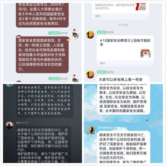 澳门十大信誉网赌大全结合疫情防控工作,以国家安全教育为主题组织各班级、团支部召开 “云”班会、线上主题团日活动,组织在班级群内探讨国家安全知识,做到互学互帮互促,提升学生的国家安全意识。