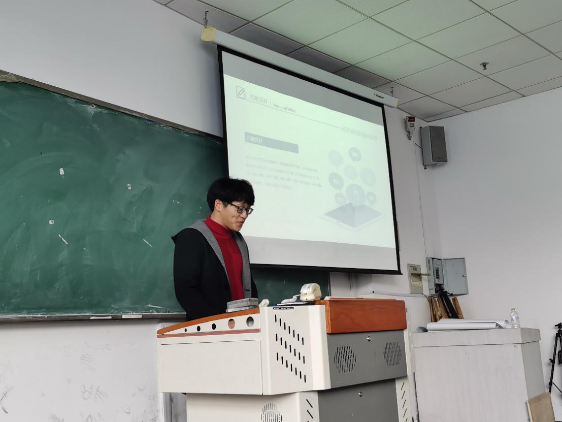 会议伊始,同学们逐个进行了简短的自我介绍,并且由班长姜俊岐同学大体介绍了班级的工作情况,候老师细心指出同学们自我介绍课件中存在的小问题,提出了自己的宝贵建议。